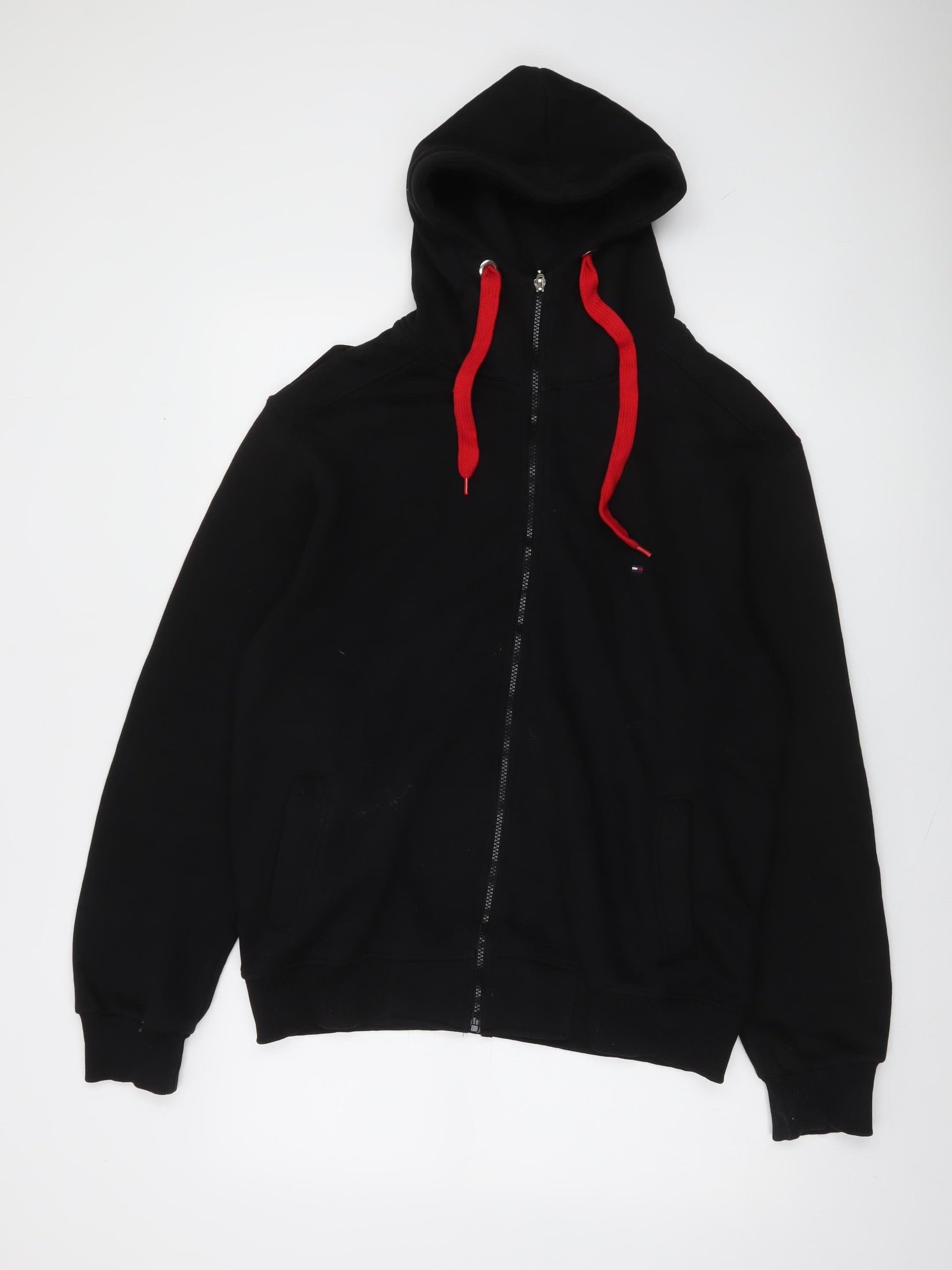 Tommy Hilfiger Men’s Black Full Zip Hoodie L Cotton Classic Style