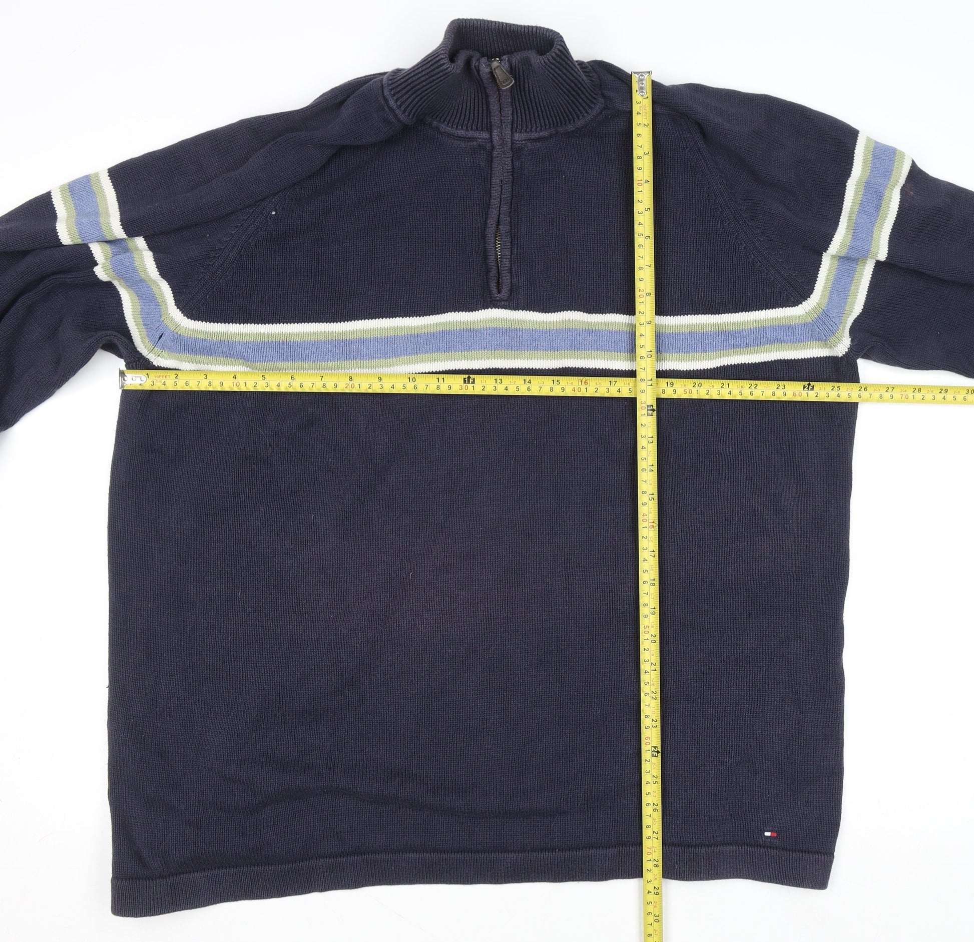 Tommy Hilfiger Men’s Blue 2XL Half Zip Cotton Jumper