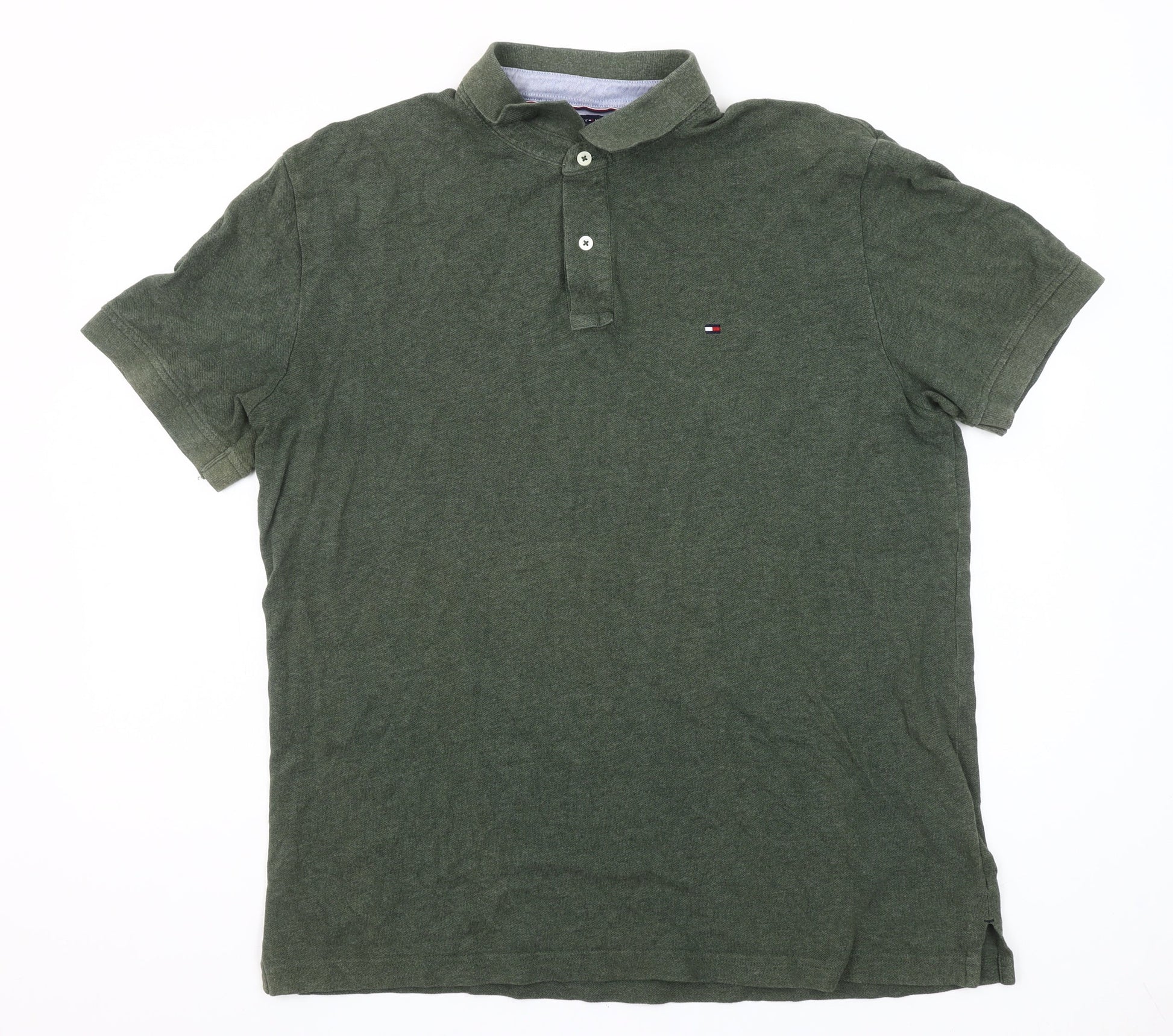 Tommy Hilfiger Men’s Green Cotton Polo Shirt XL Short Sleeve Classic Fit