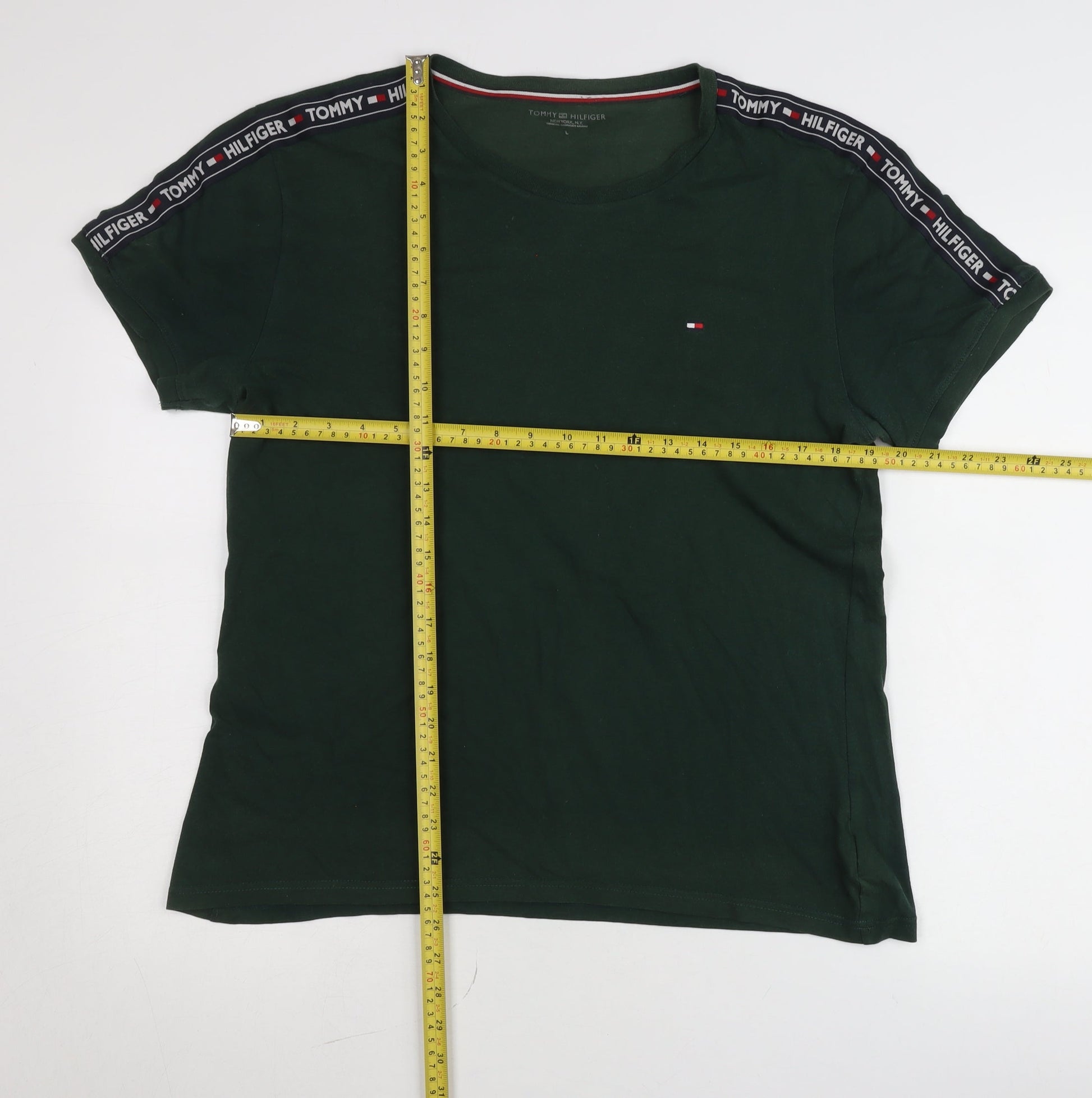 Tommy Hilfiger Men’s Green Logo Tape Crew Neck T-Shirt Size L