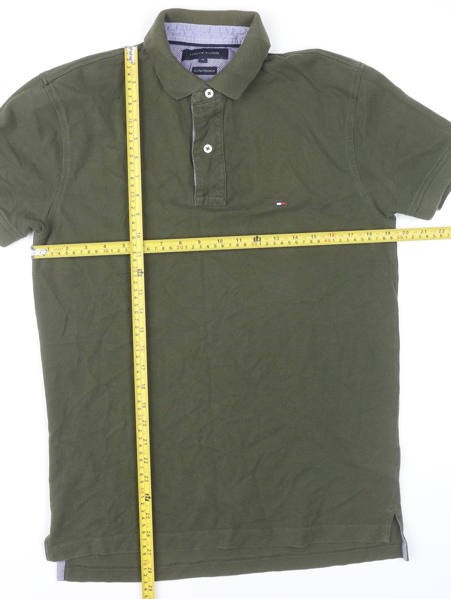 Tommy Hilfiger Men’s Green Polo Shirt M Cotton Short Sleeve