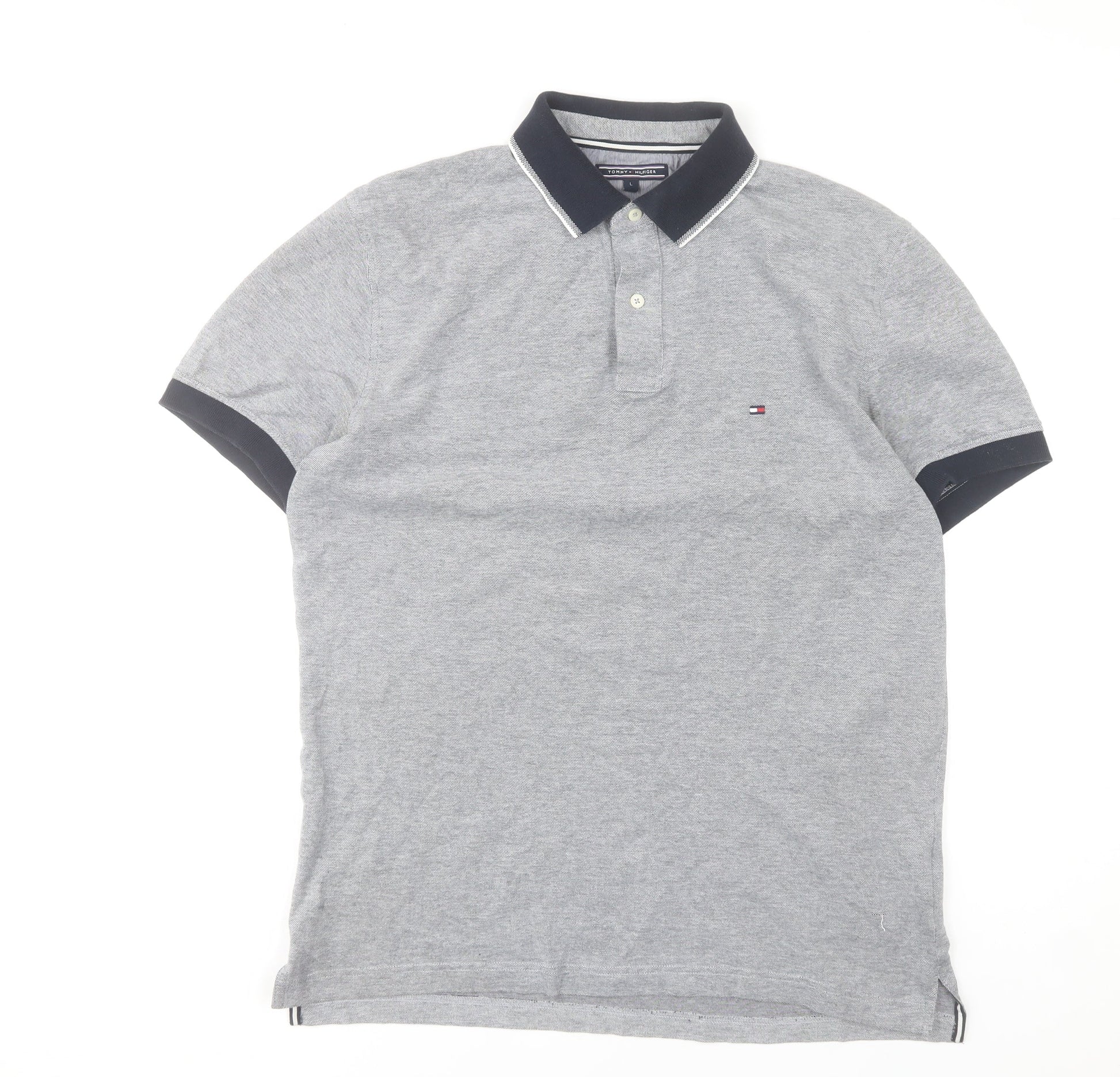 - Keywords: Tommy Hilfiger mens polo grey polo shirt short sleeve cotton elastane regular fit collared classic style breathable casual wear size L