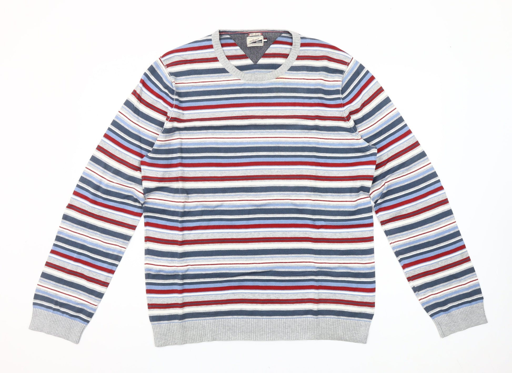 Tommy Hilfiger Men’s Multicoloured 2XL Striped Cotton Crew Neck Jumper