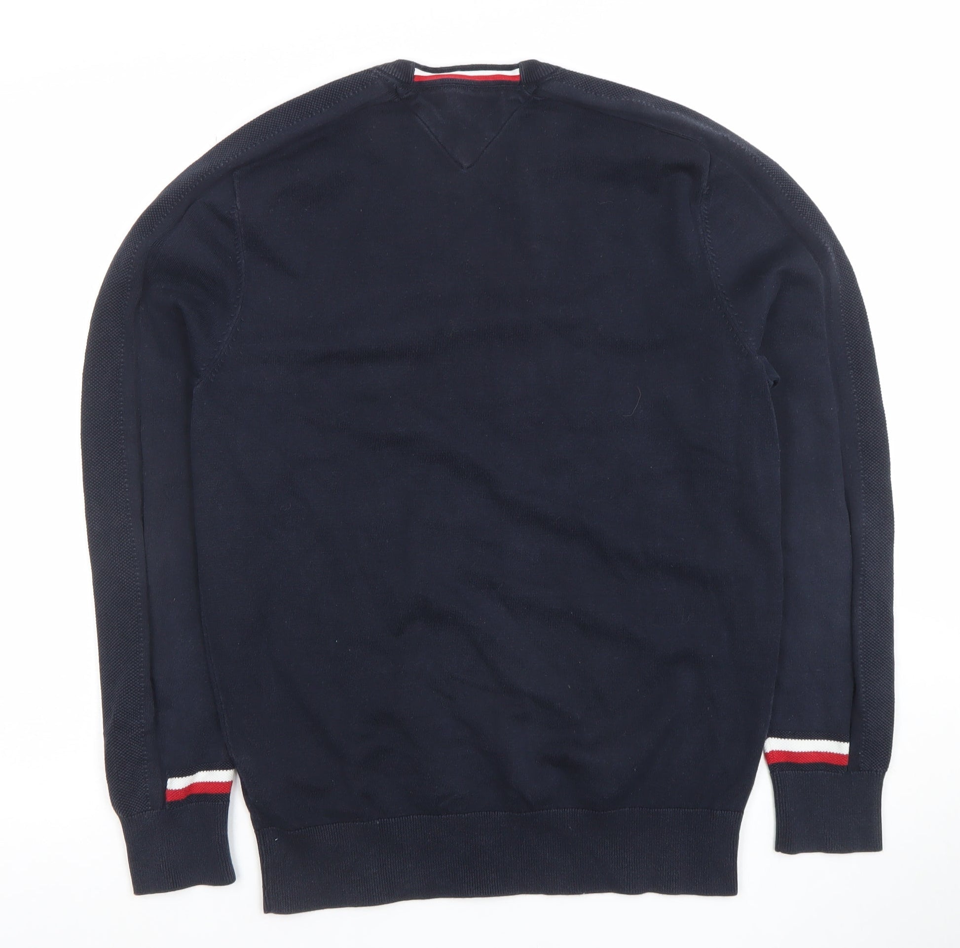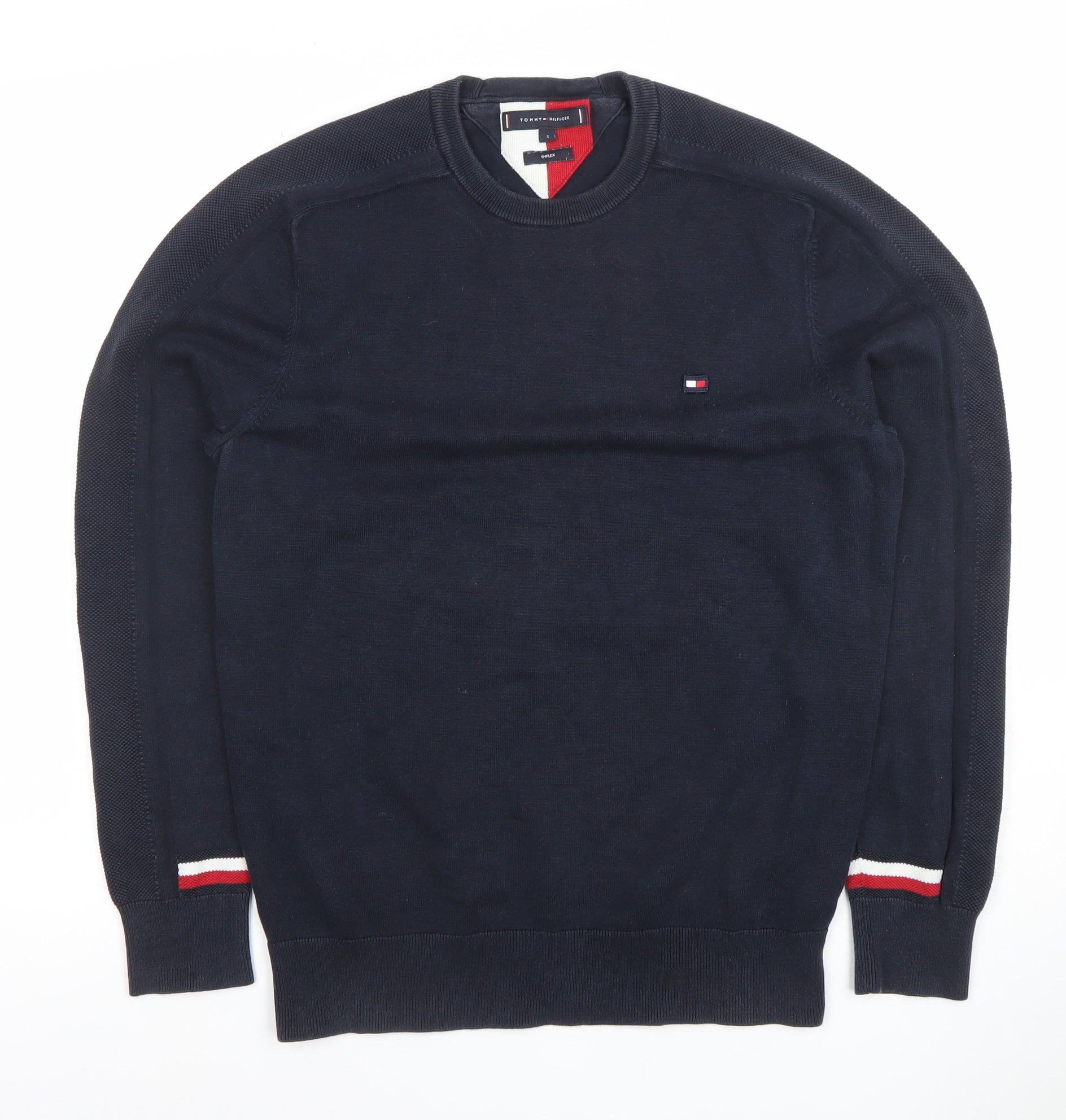 Tommy Hilfiger Men’s Navy Blue Crew Neck Cotton Jumper Size S