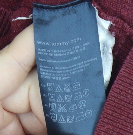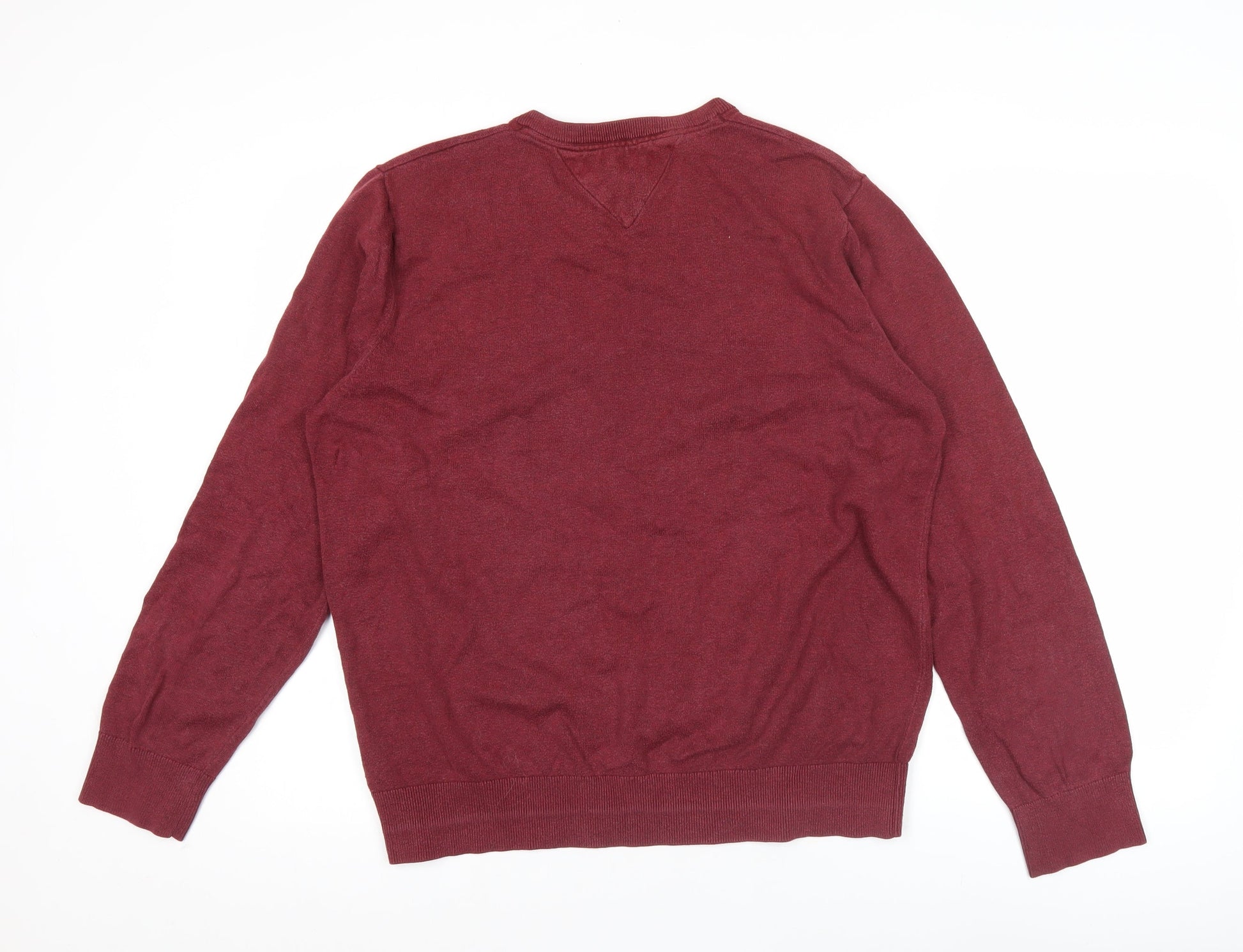 Tommy Hilfiger Men’s Red Cotton V-Neck Jumper Size L Pullover Knitwear