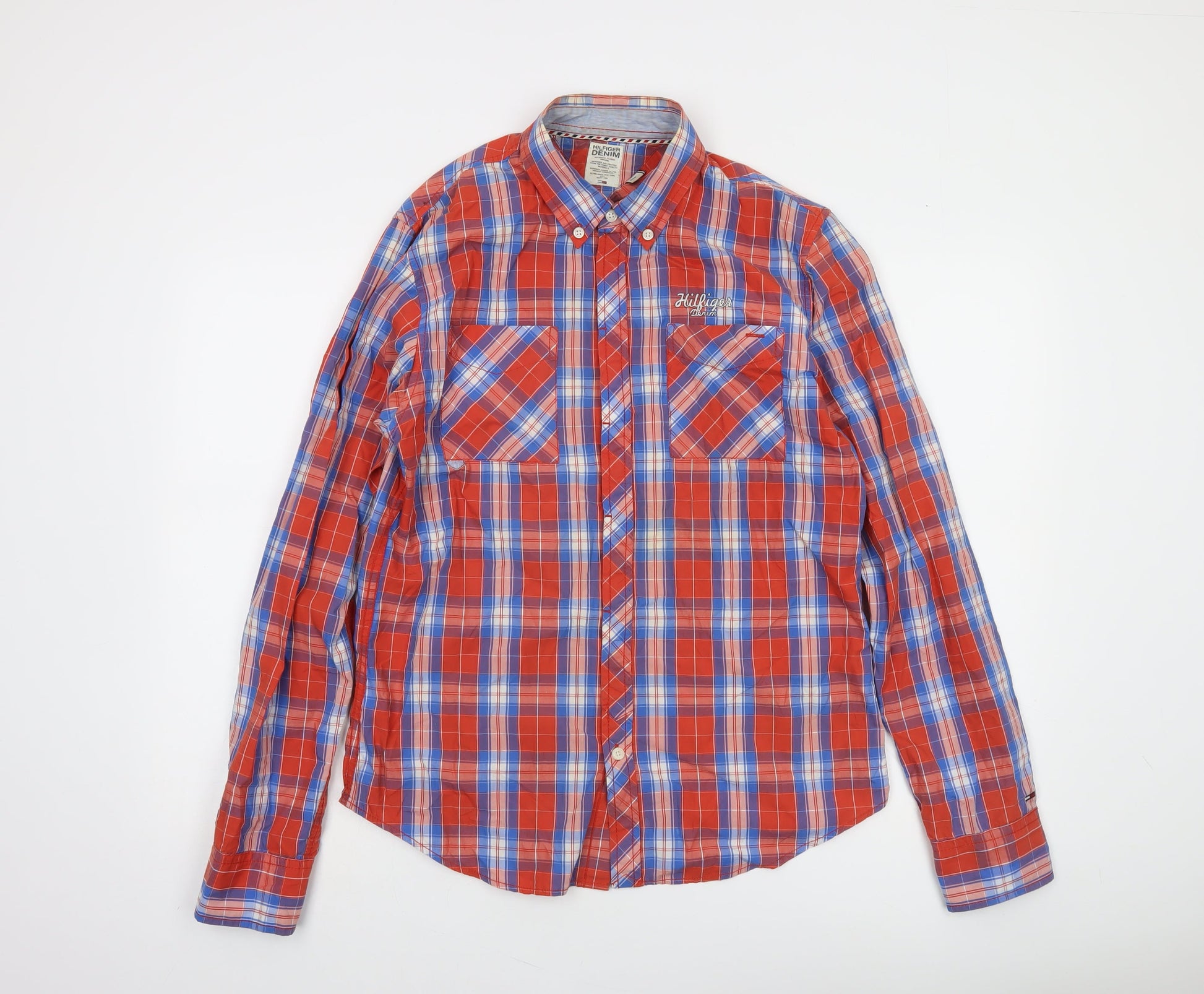 Tommy Hilfiger Men’s Red Plaid Button-Down Long Sleeve Cotton Shirt M