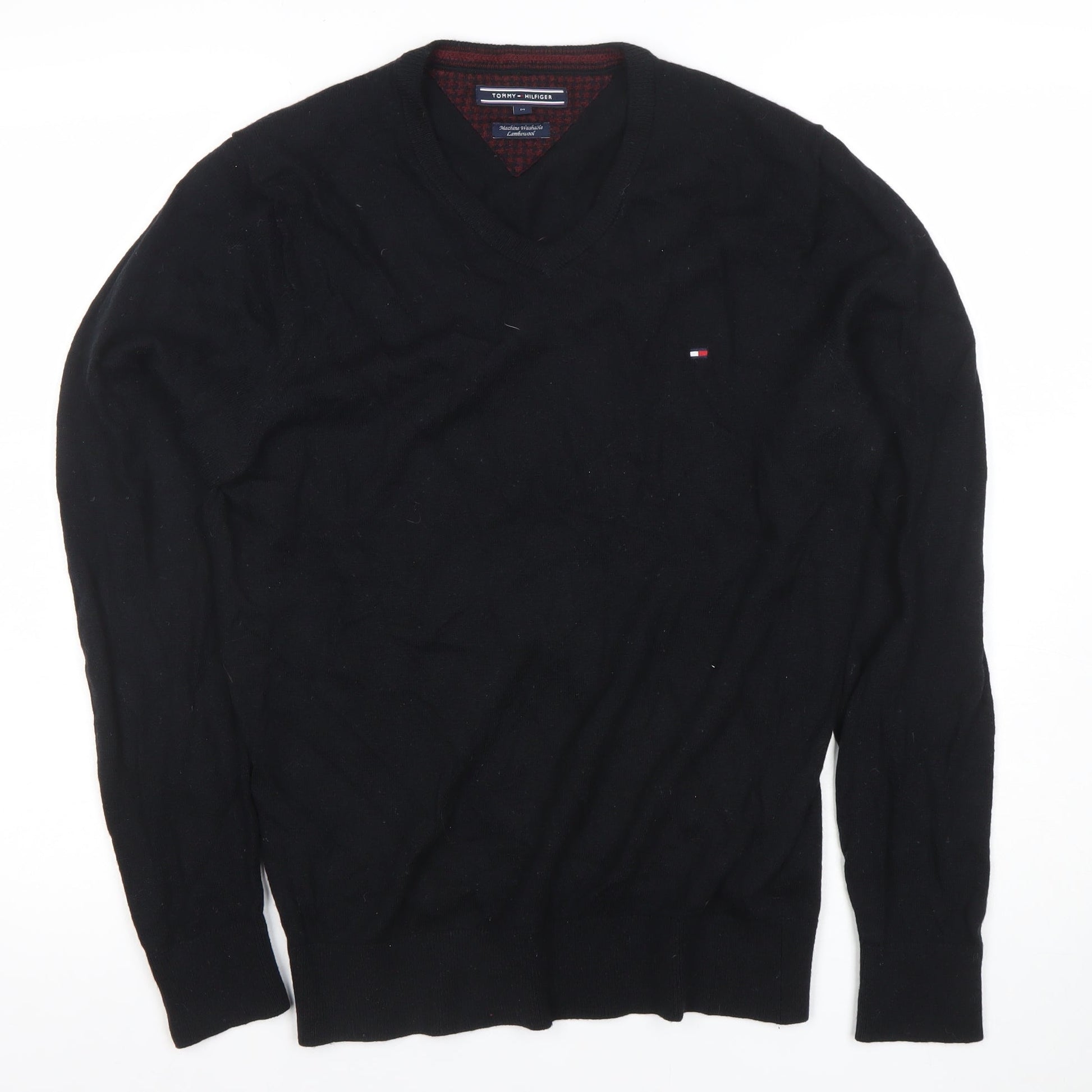 Tommy Hilfiger Men's Black Lambswool V-Neck Jumper M