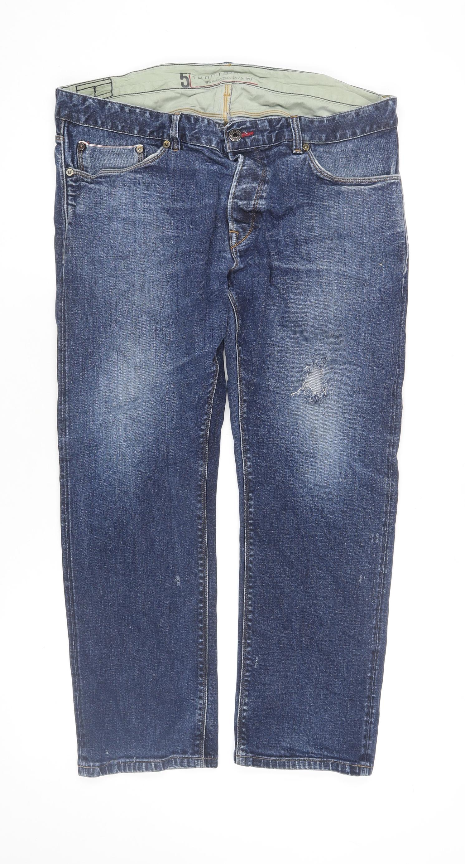 Tommy Hilfiger Men's Blue 38x30 Regular Straight Denim Jeans