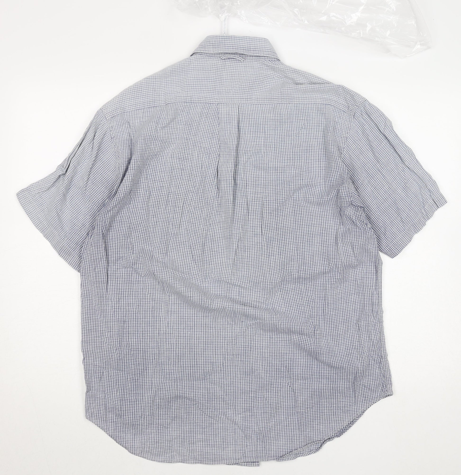 Tommy Hilfiger Men's Blue Check Short Sleeve Button-Up Shirt Size M