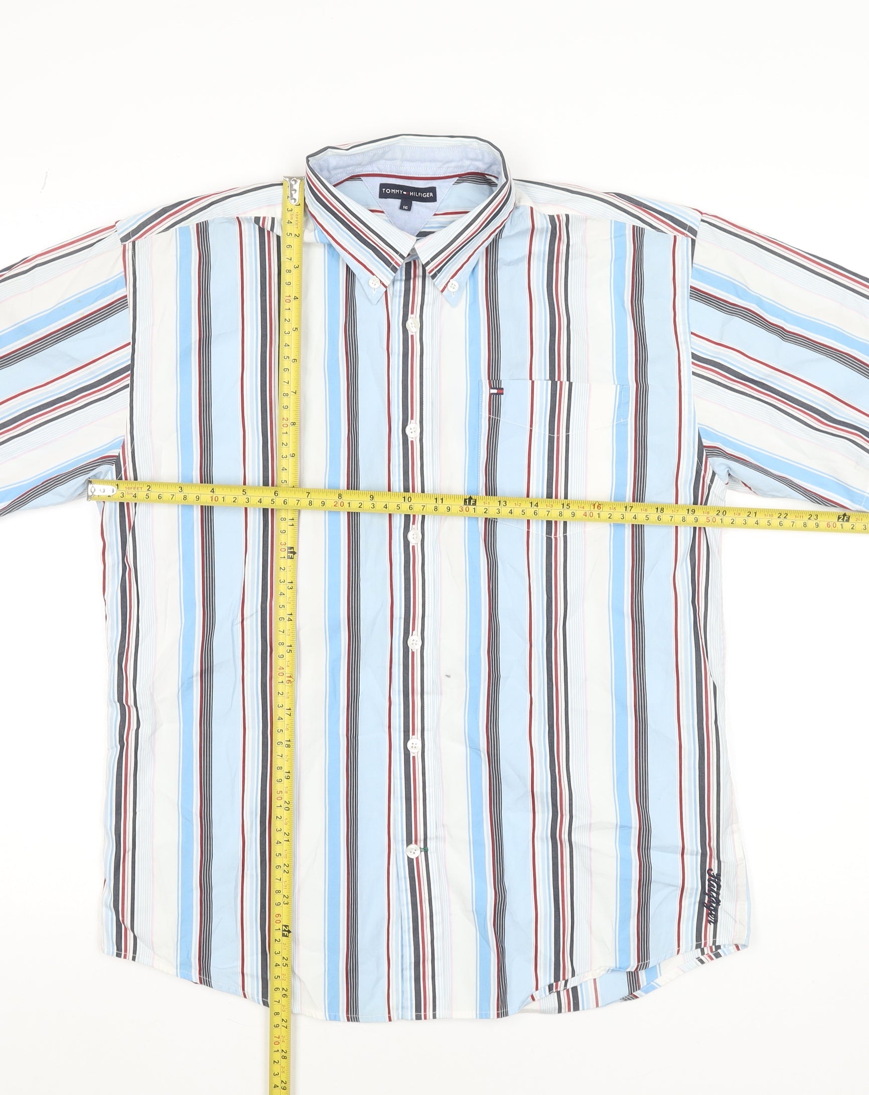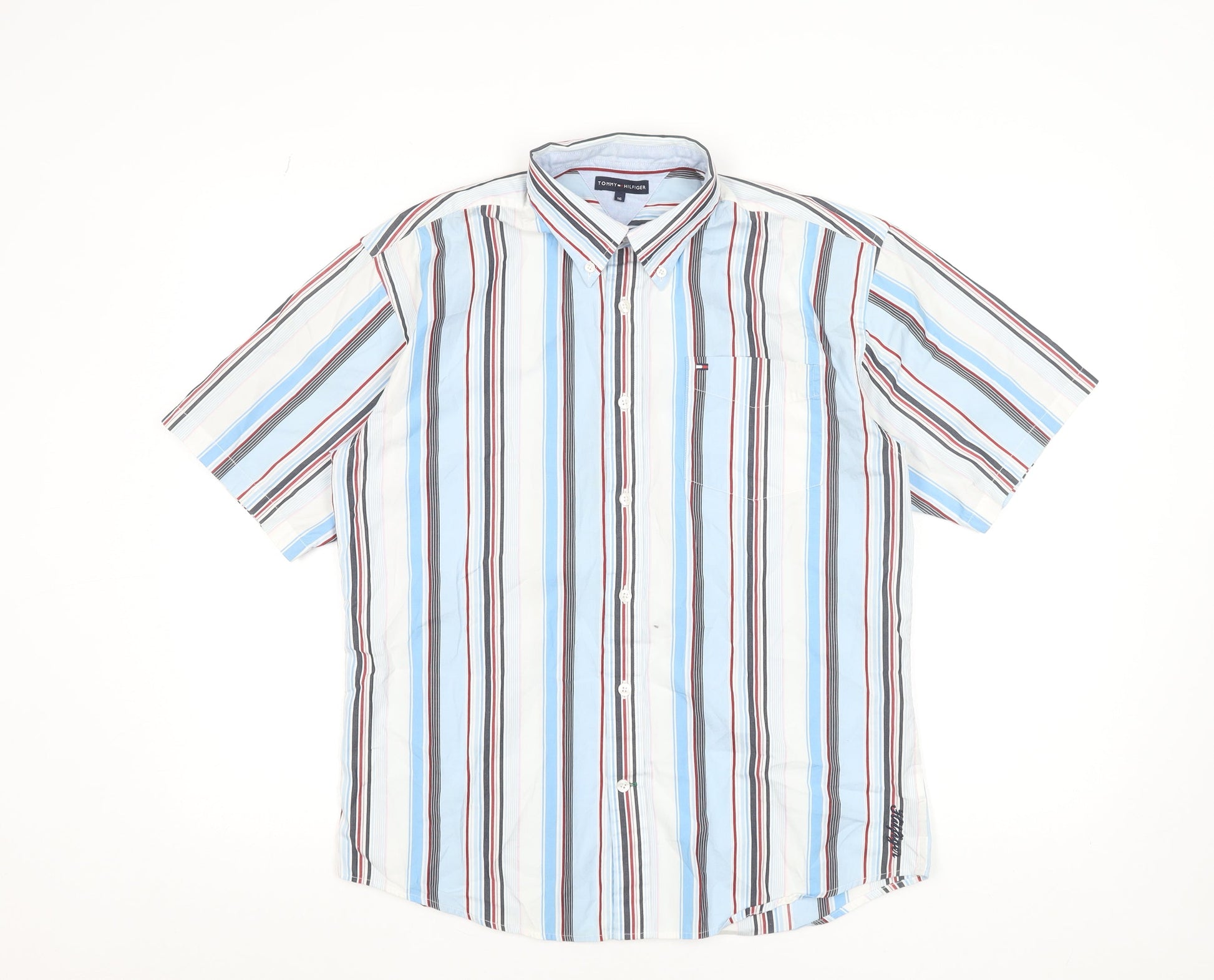 Tommy Hilfiger Men's Blue Striped Button-Down Shirt Size 16 Regular Cotton