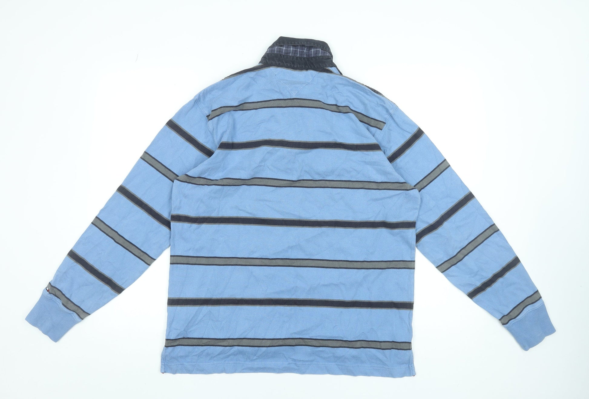 Tommy Hilfiger Men's Blue Striped Long Sleeve Cotton Polo M
