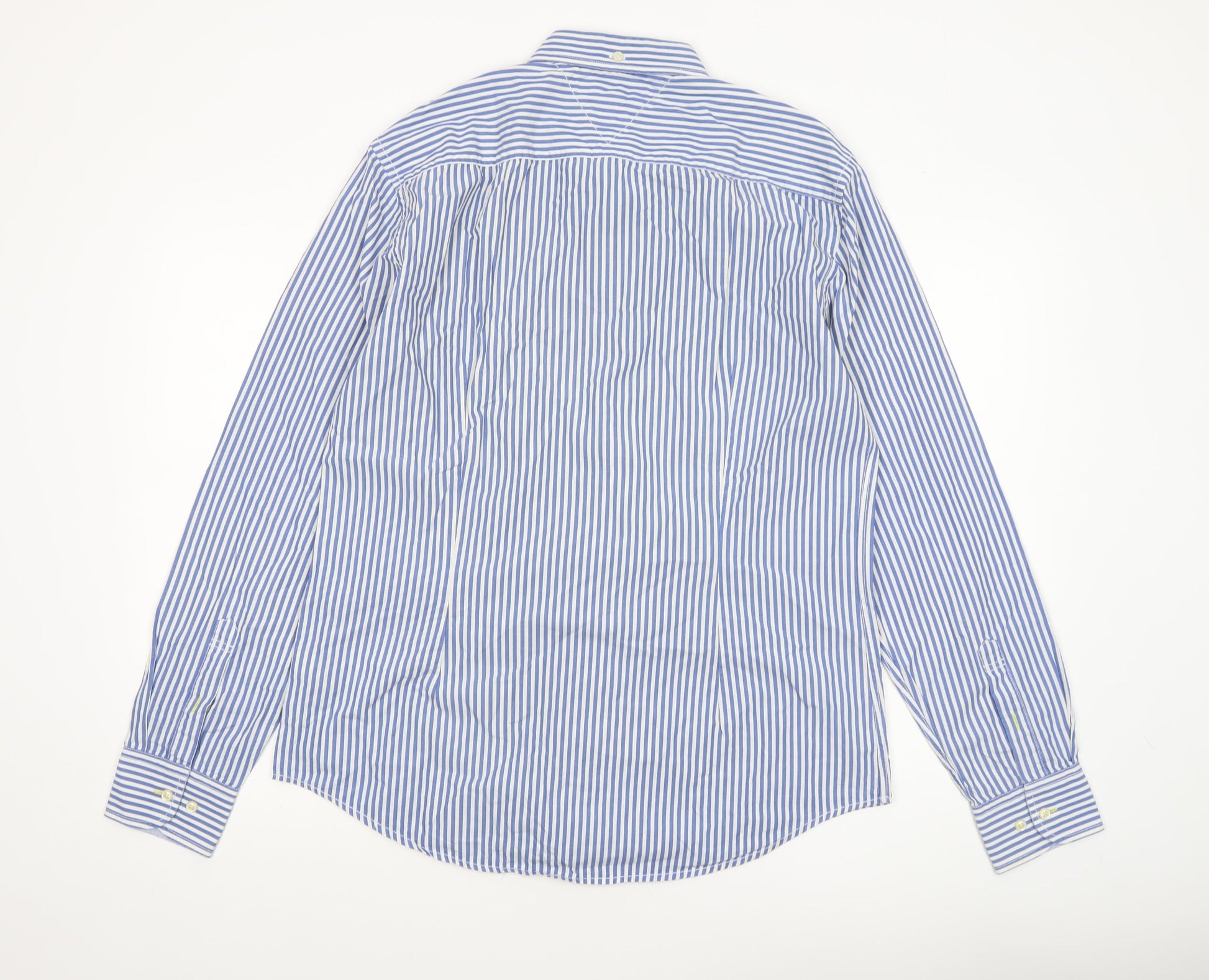 Tommy Hilfiger Men's Blue Striped Slim Fit Long Sleeve Shirt XL
