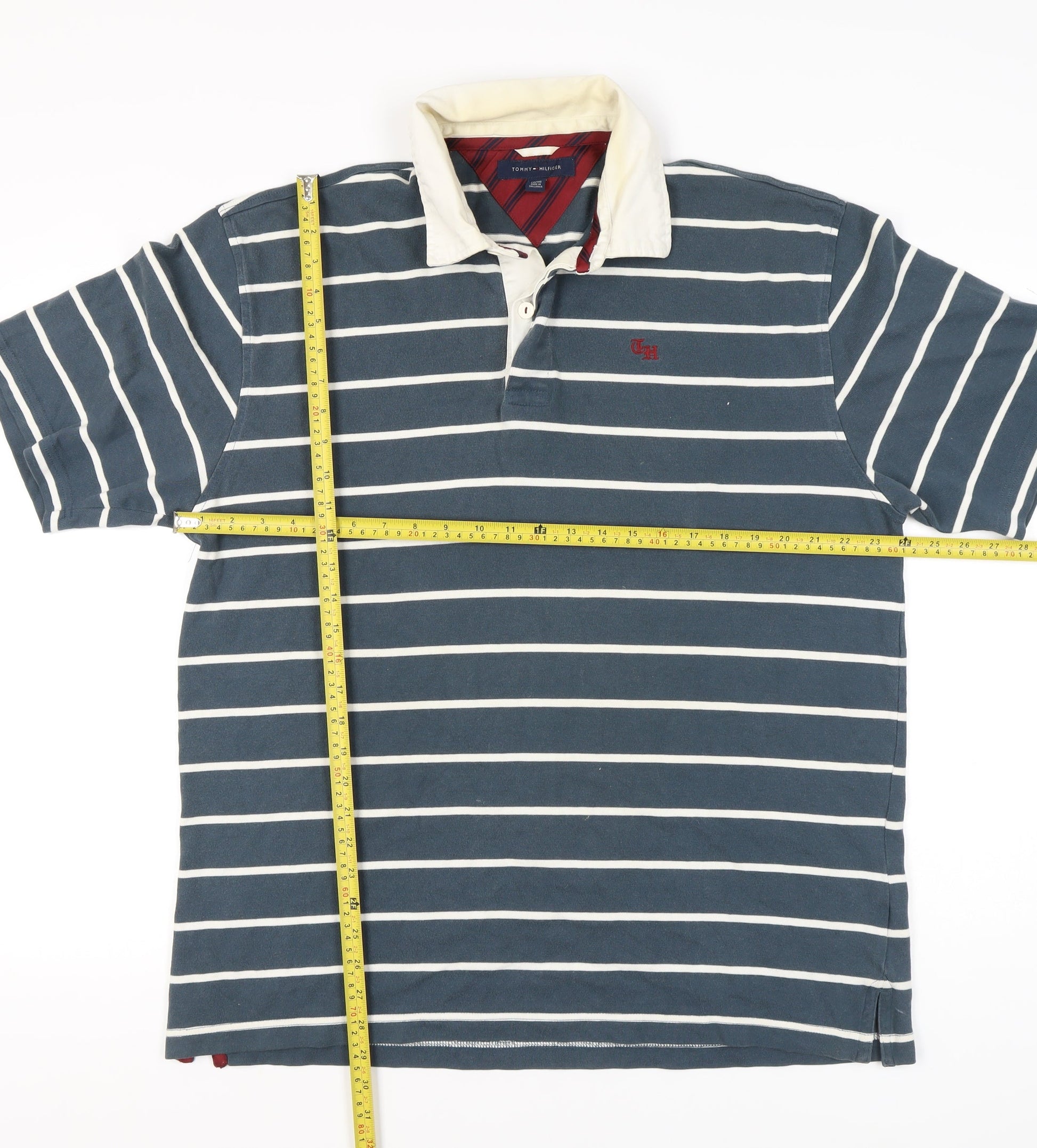 Tommy Hilfiger Men's Blue XL Striped Polo Shirt Cotton Short Sleeve