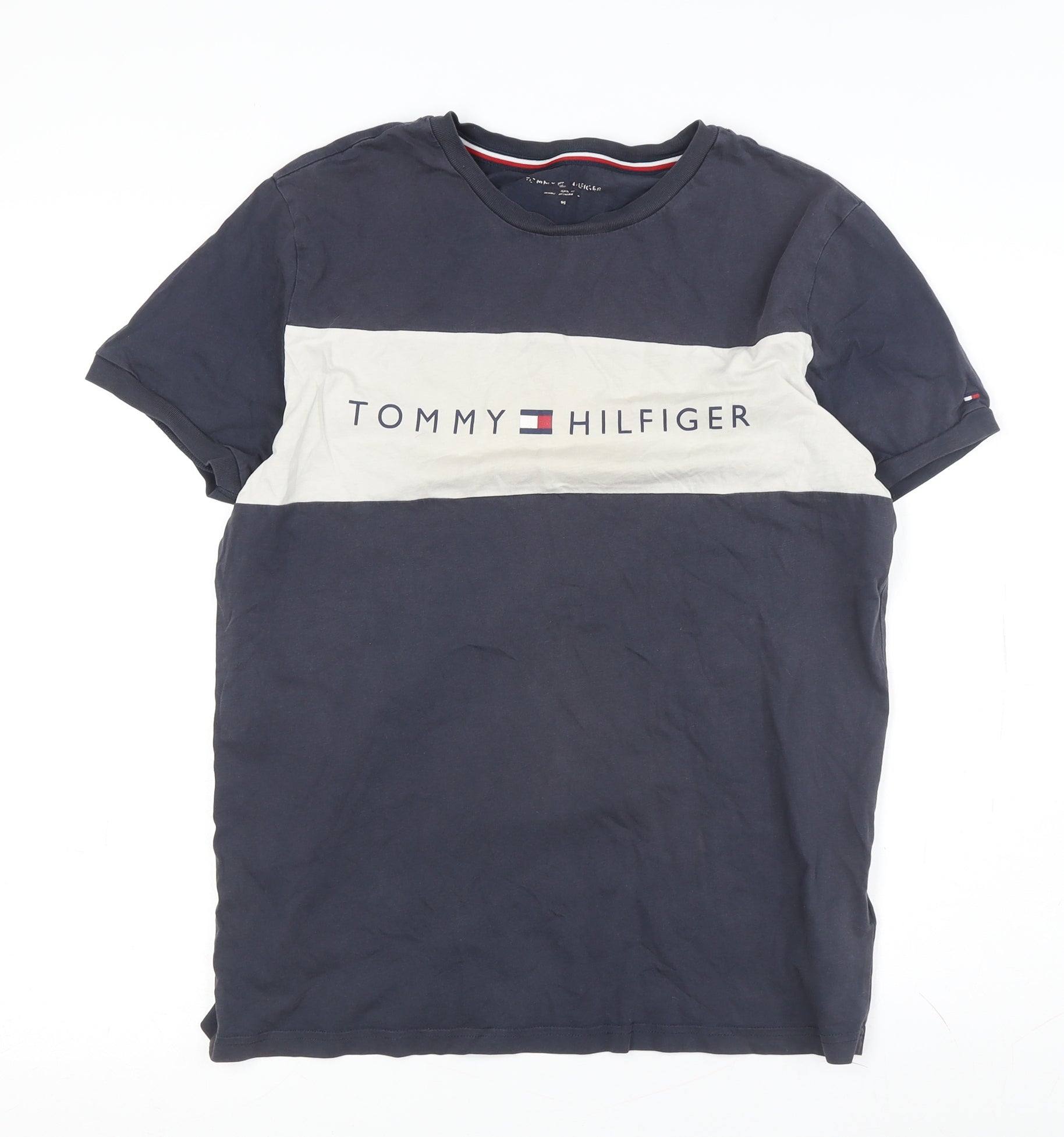 Tommy Hilfiger Men's Colourblock T-Shirt Medium Blue Beige
