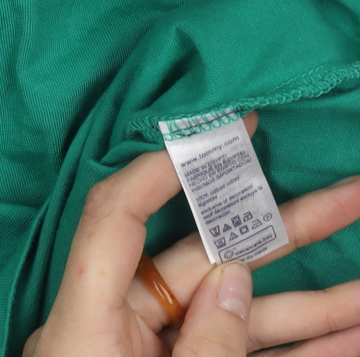 Tommy Hilfiger Men's Green Regular Fit Logo Cotton T-Shirt Size S