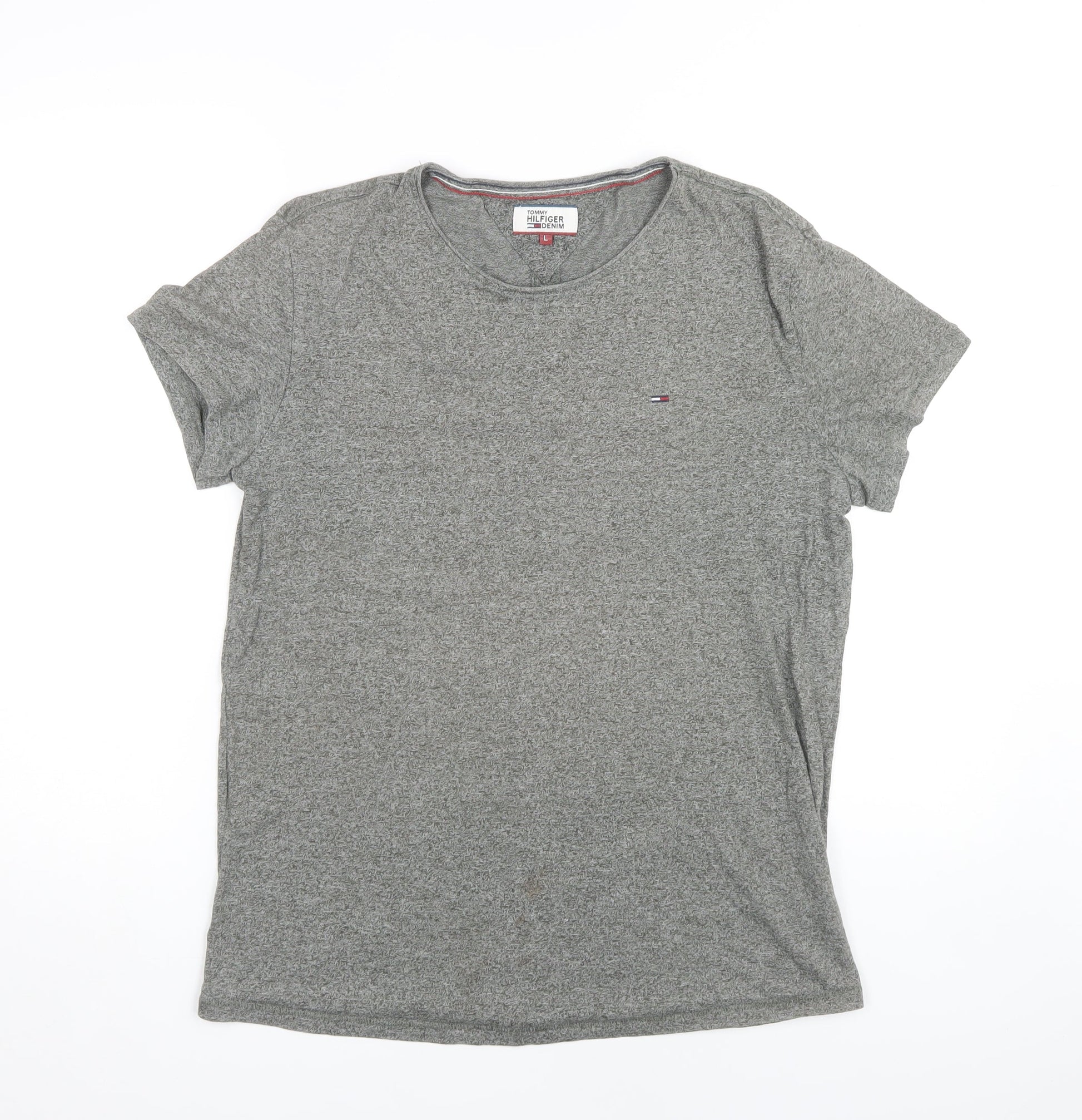 Tommy Hilfiger Men's Grey L T-Shirt, Crew Neck, Logo Accent