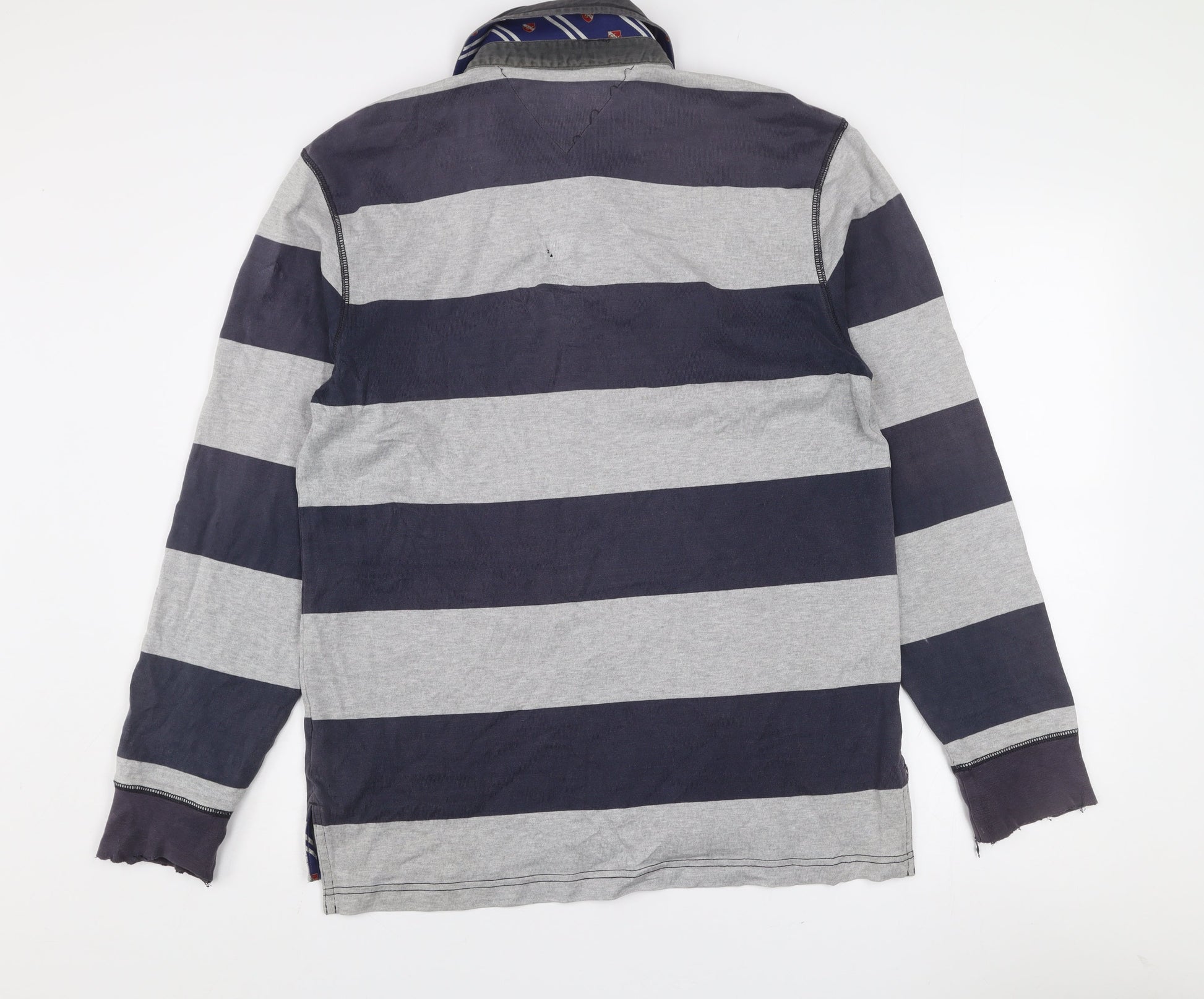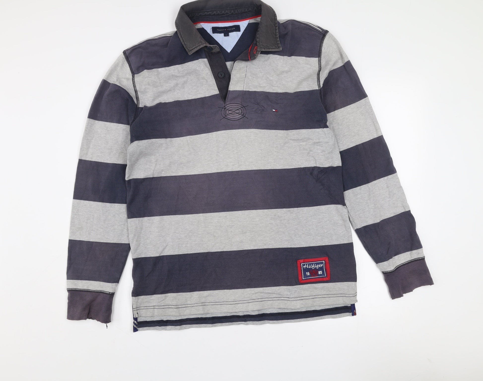 Tommy Hilfiger Men's Grey Striped Long Sleeve Rugby Polo Shirt L