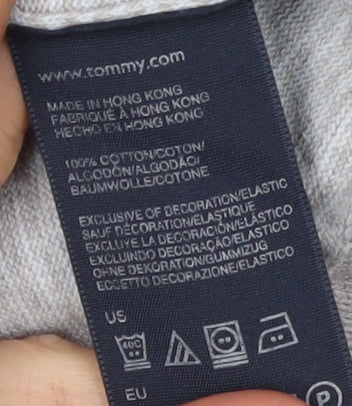 Tommy Hilfiger Men's Grey V-Neck Striped Pullover - S