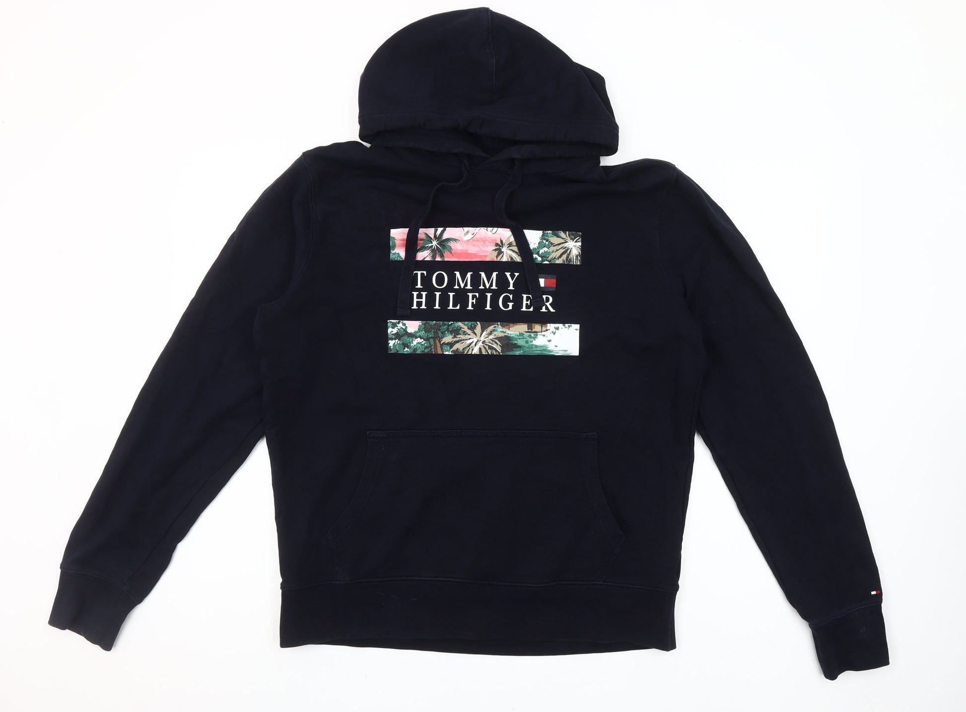 Tommy Hilfiger Men's Navy Hoodie L Pullover Graphic Organic Cotton