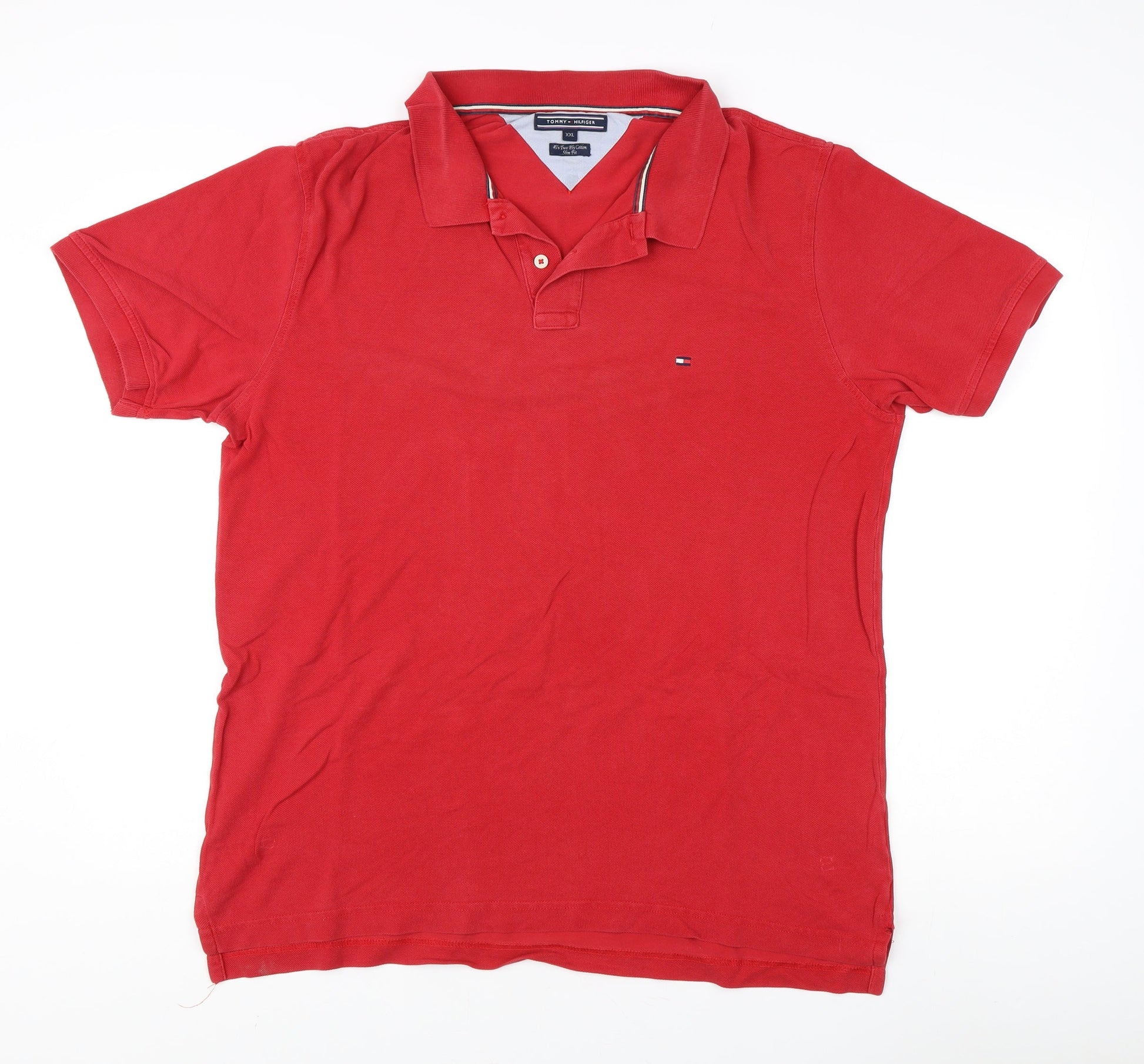 Tommy Hilfiger Men's Red 2XL Polo Short Sleeve Slim Fit