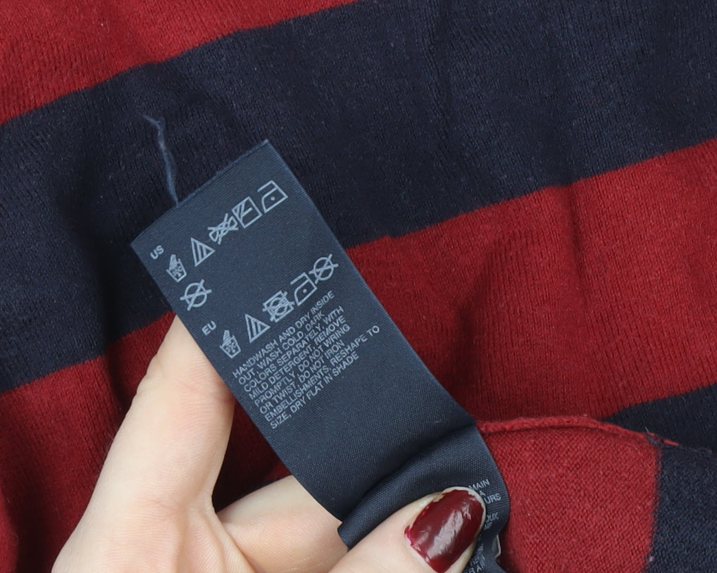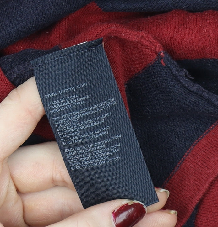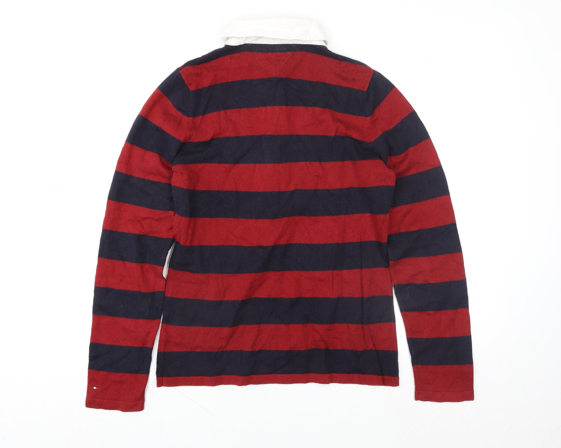 Tommy Hilfiger Men's Red Navy Striped Rugby Shirt L Long Sleeve Cotton