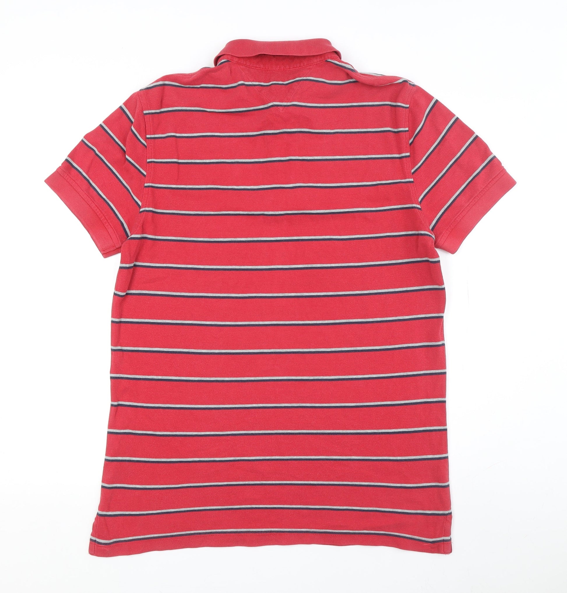 Tommy Hilfiger Men's Red Polo - Striped Short Sleeve M