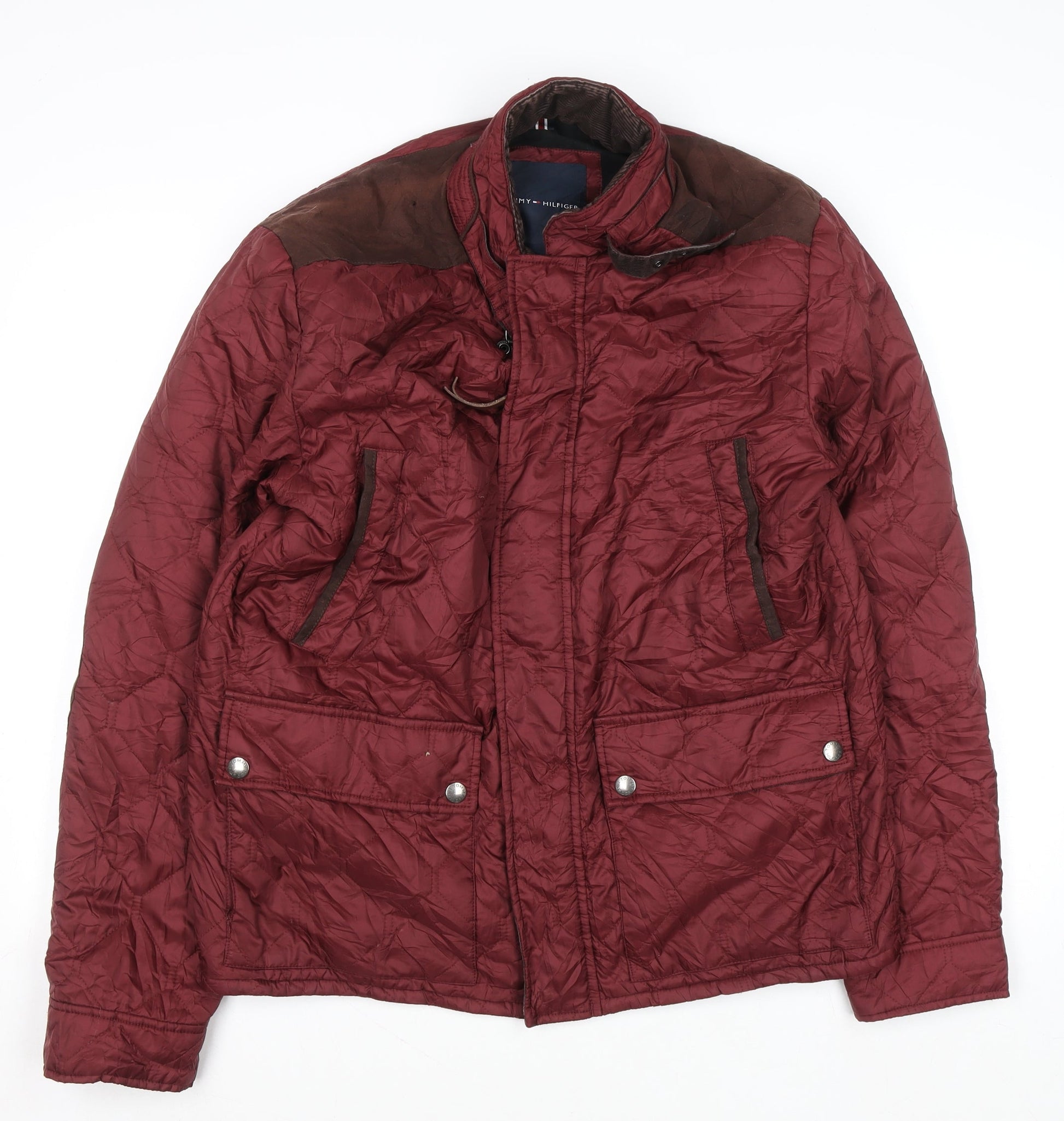 Tommy Hilfiger Men's Red Quilted Faux Leather Jacket Size L