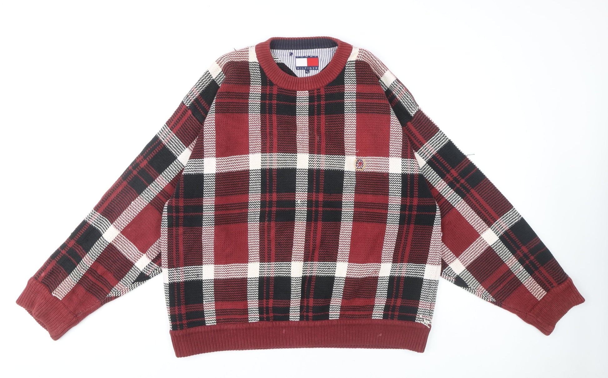 Tommy Hilfiger Men's Red XL Plaid Pullover Jumper