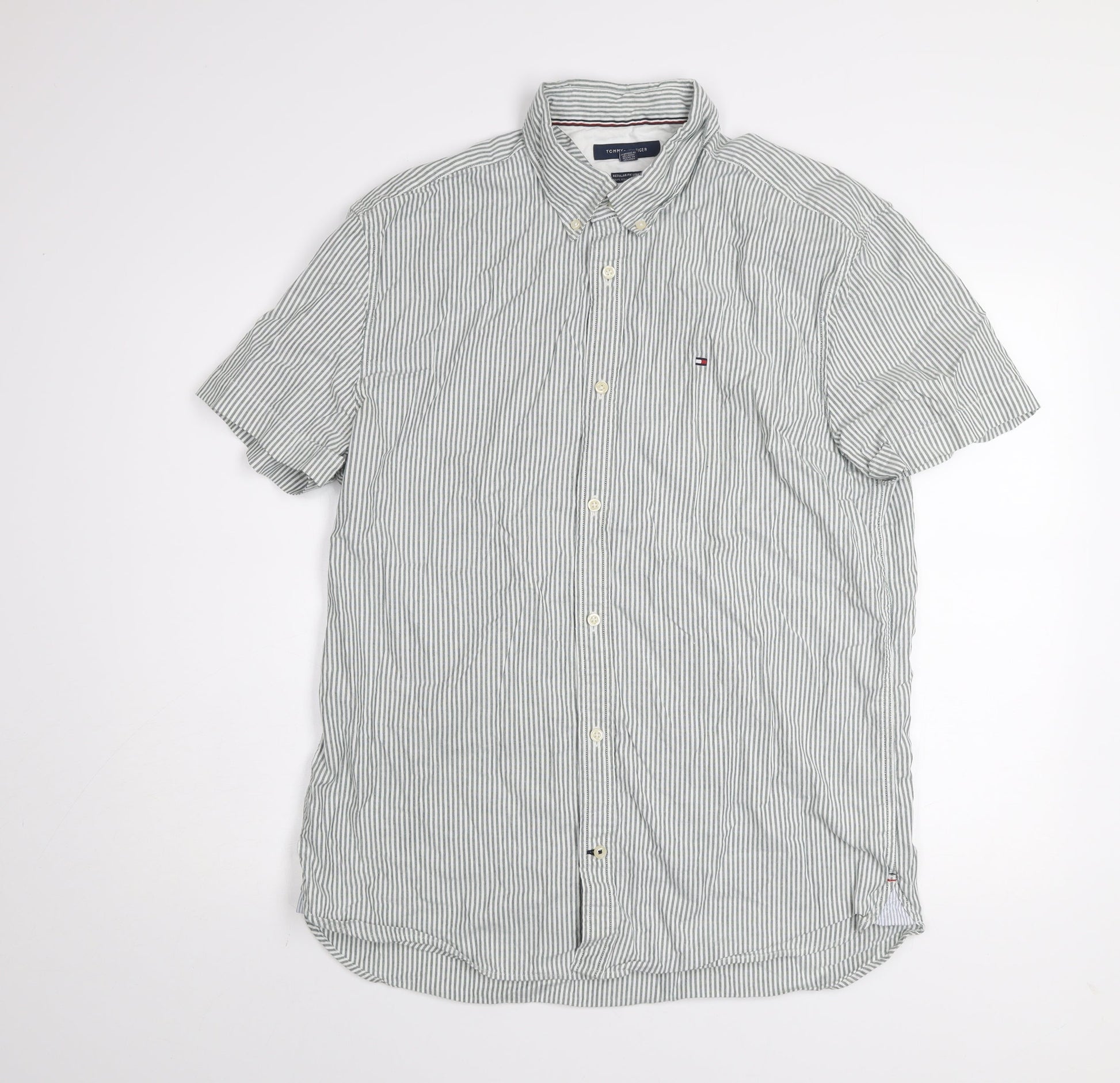 Tommy Hilfiger Men's White Striped Button-Up Shirt XL Regular Fit