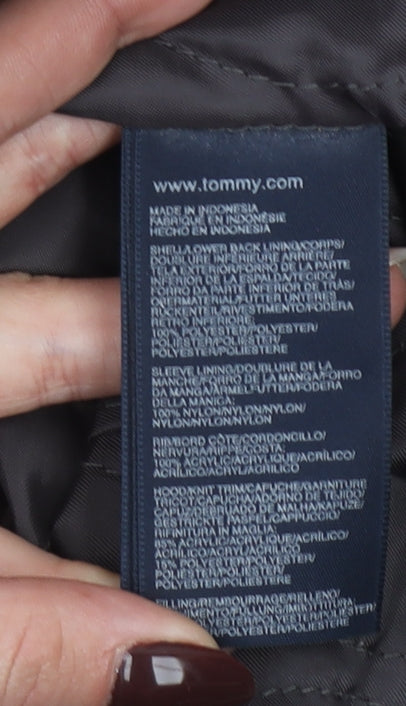 Tommy Hilfiger Women Black Long Parka Coat Faux Fur Trim Hood Belted M