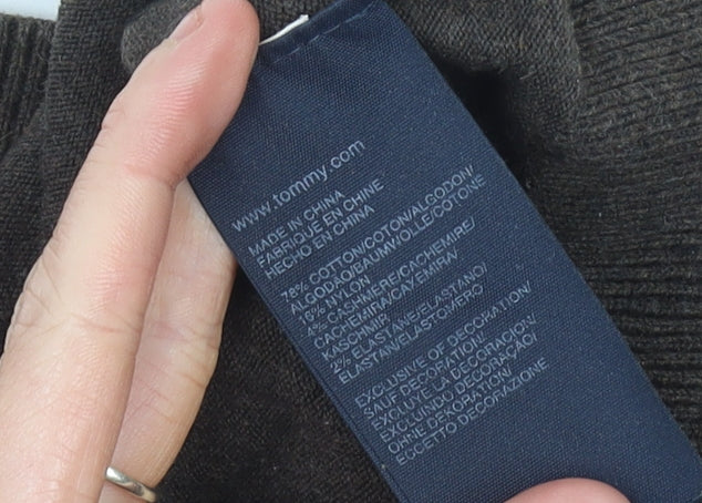 Tommy Hilfiger Women Brown XS V-Neck Pullover Jumper Cotton Cashmere
