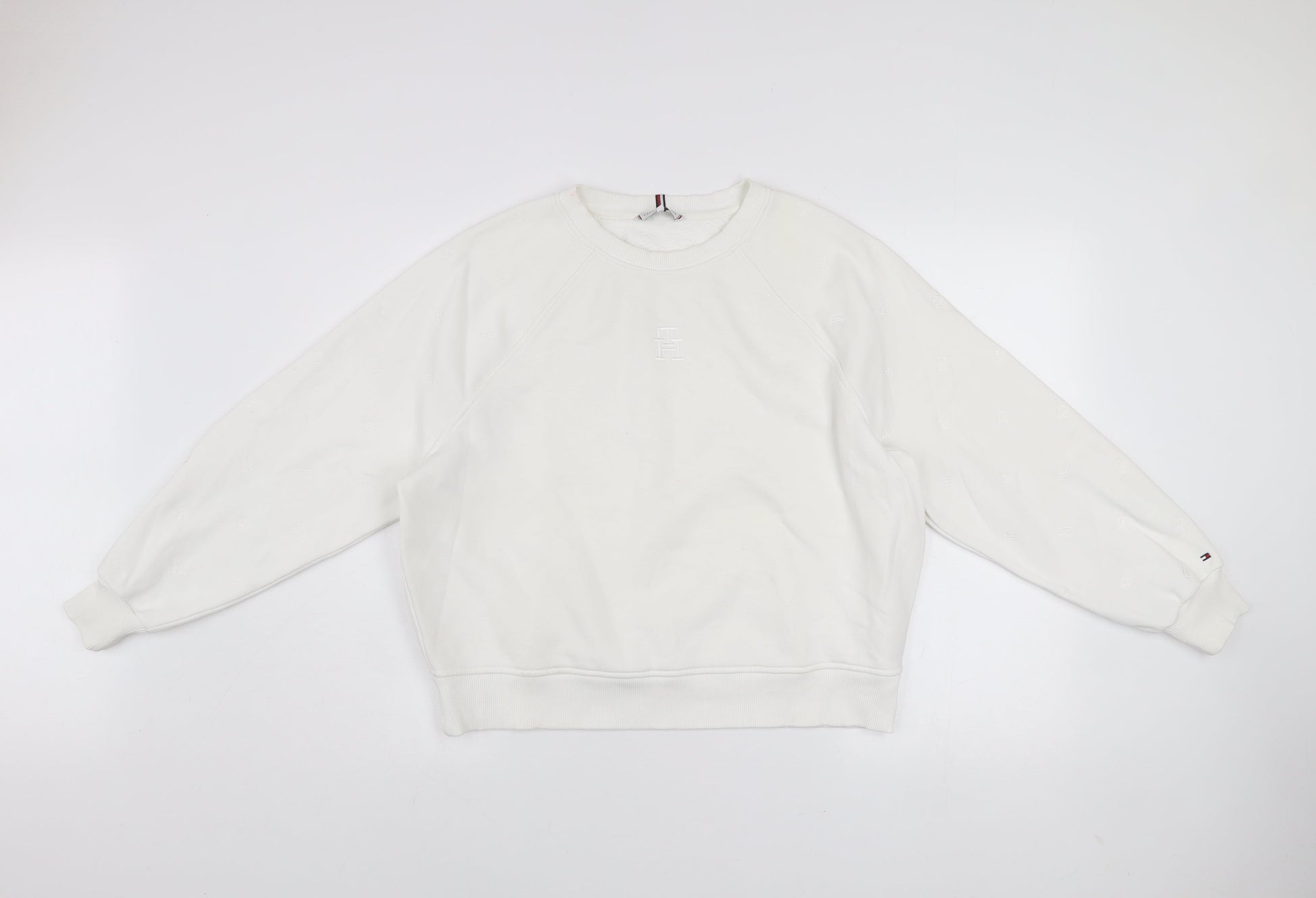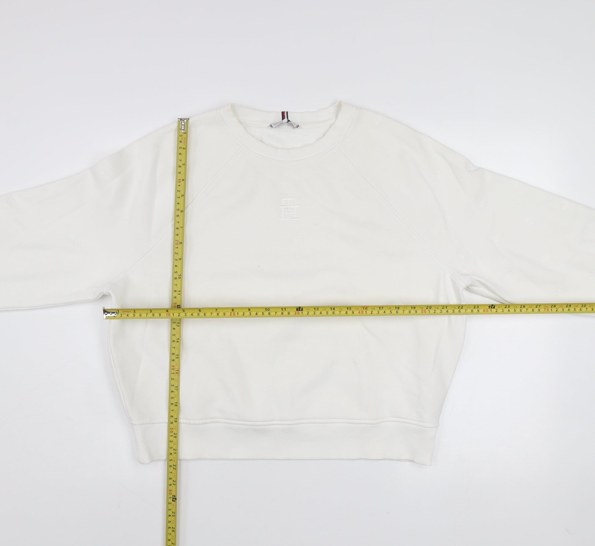Tommy Hilfiger Women Ivory Crew Neck Pullover Sweatshirt M