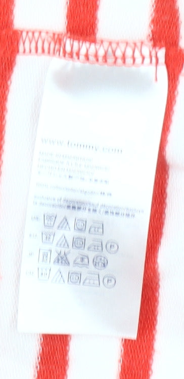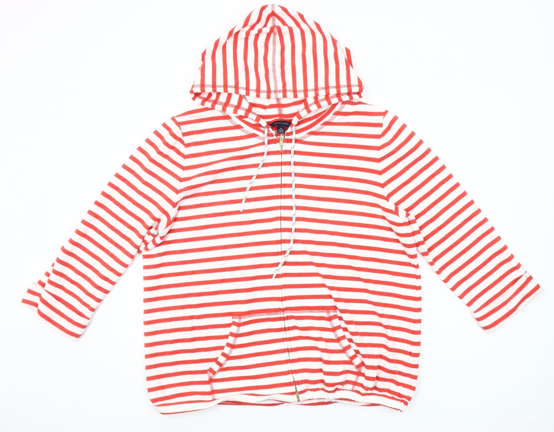 Tommy Hilfiger Women Red White Striped Full Zip Hoodie XL Cotton