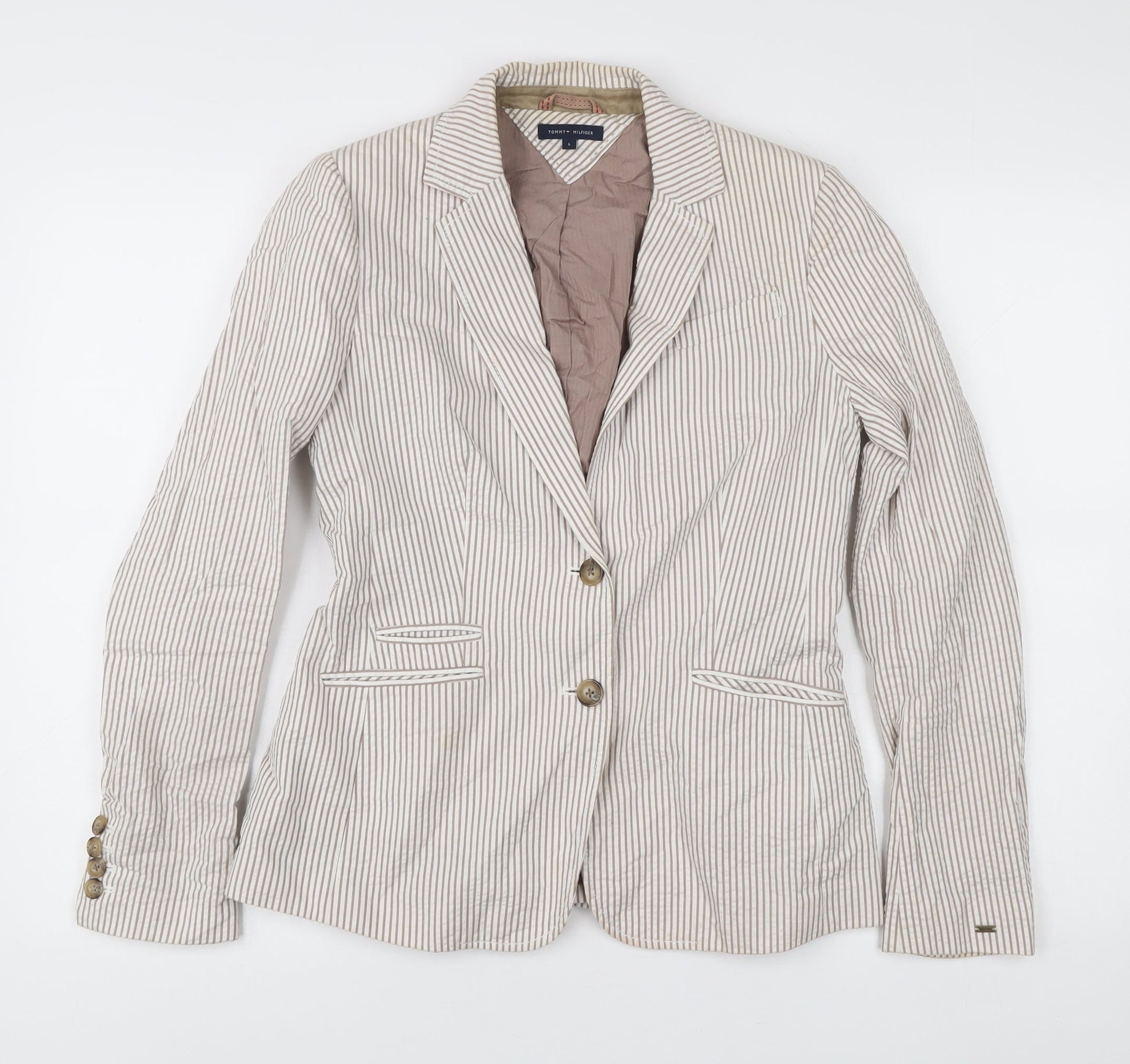 Tommy Hilfiger Women’s Beige Striped Linen Blazer Jacket Size 10