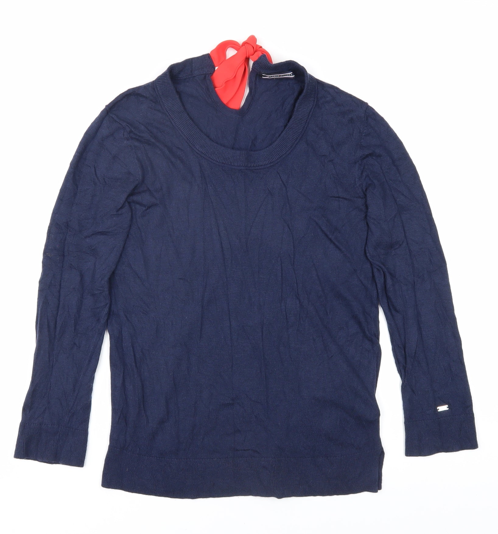 Tommy Hilfiger Women’s Blue Blouse - Size S, Bow Accent