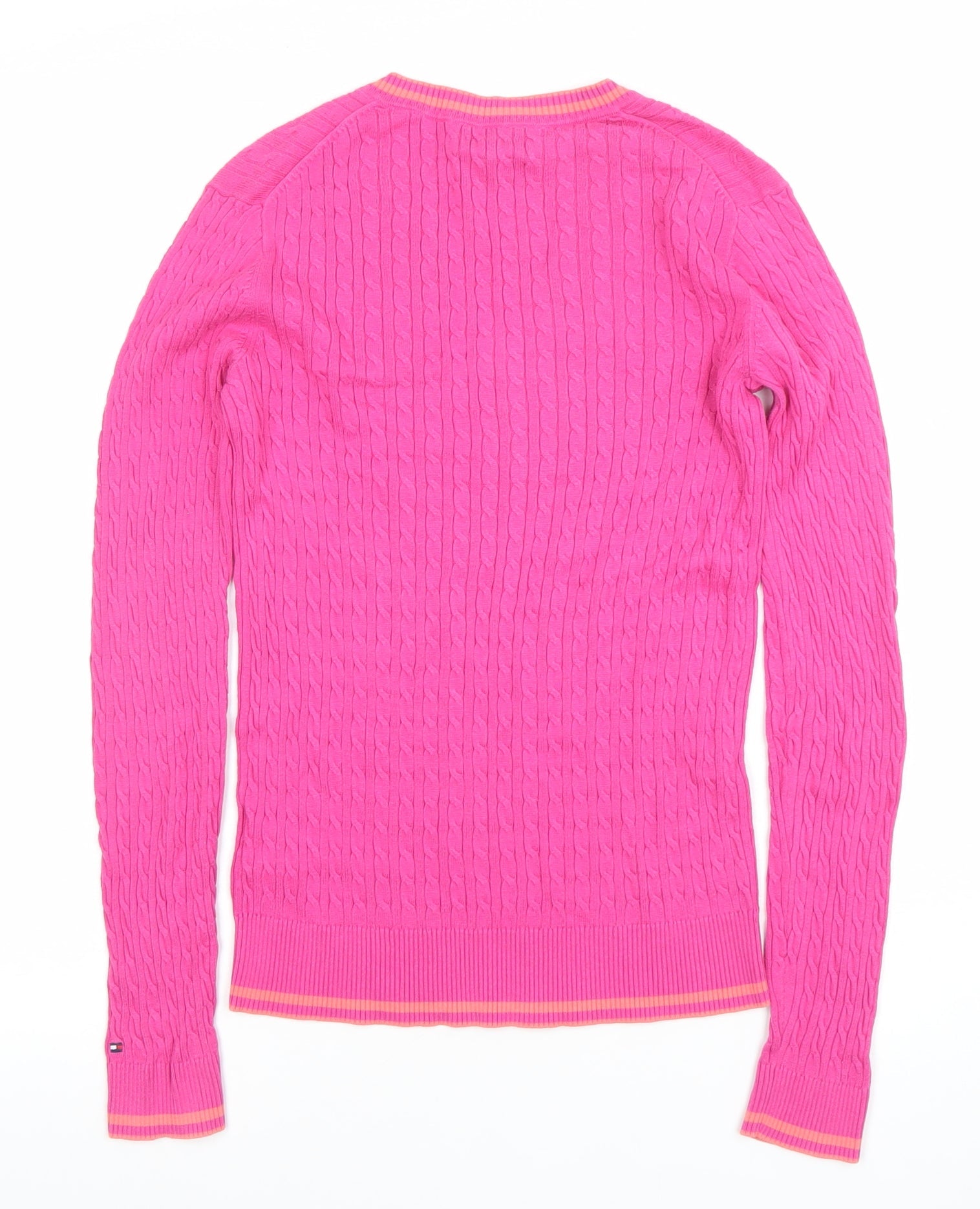 Tommy Hilfiger Women’s Pink Cable-Knit V-Neck Cotton Jumper Size S