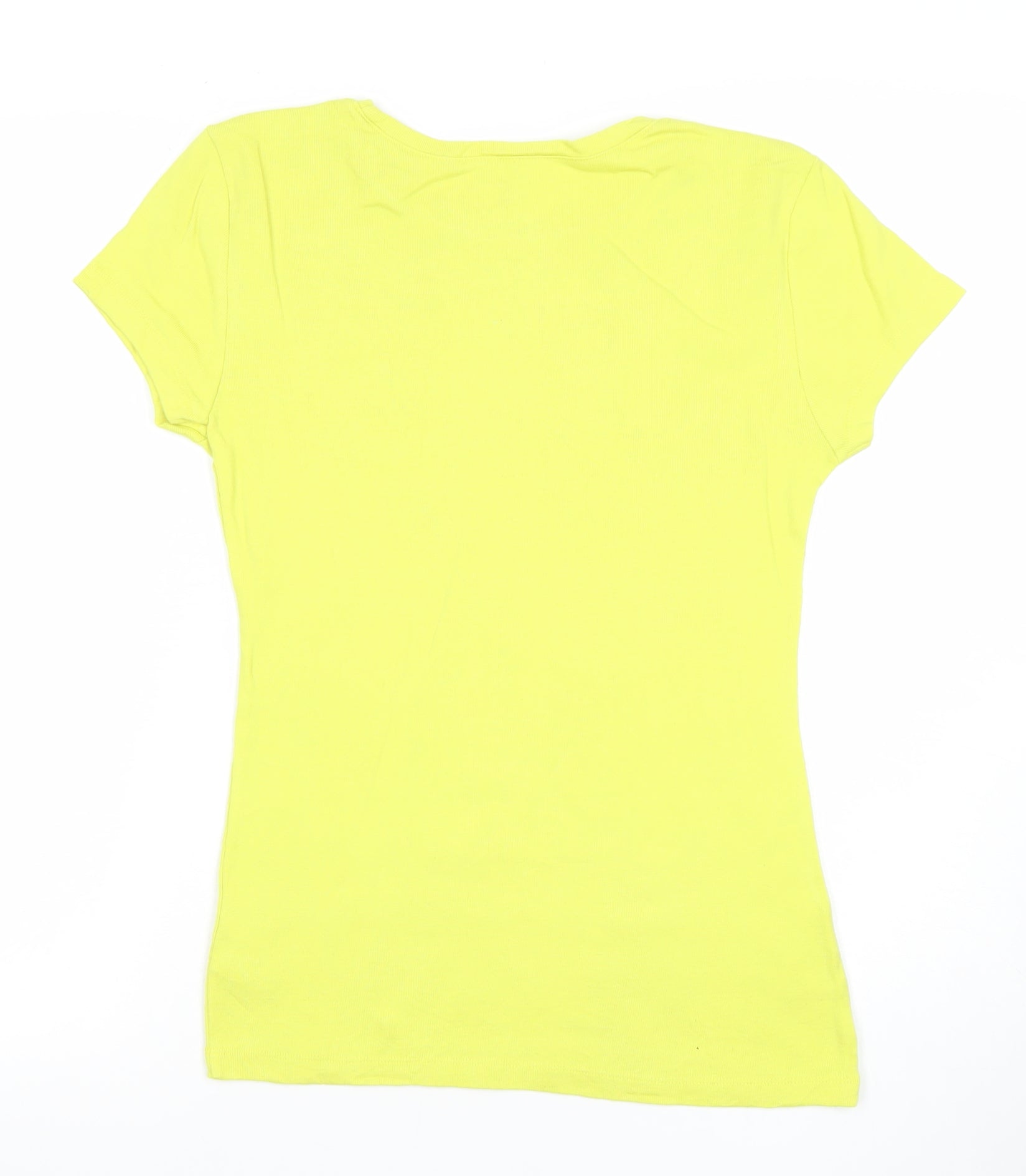 Tommy Hilfiger Women Yellow Cotton Slim Fit Short Sleeve T-Shirt M