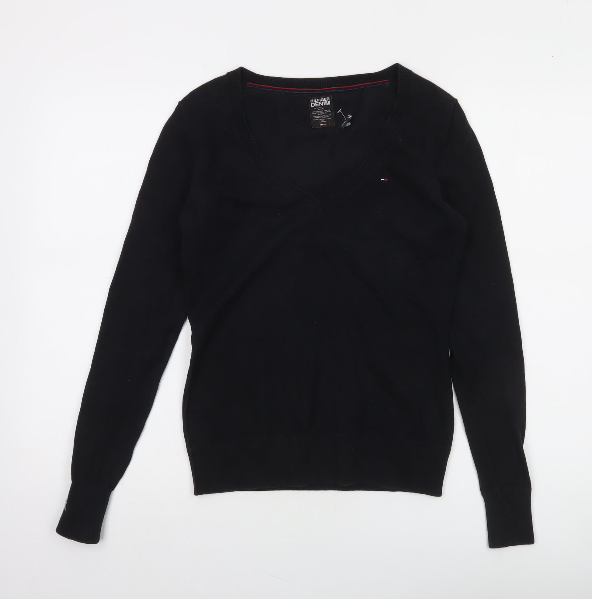 Tommy Hilfiger Women's Black V-Neck Cotton Knit Jumper Size S