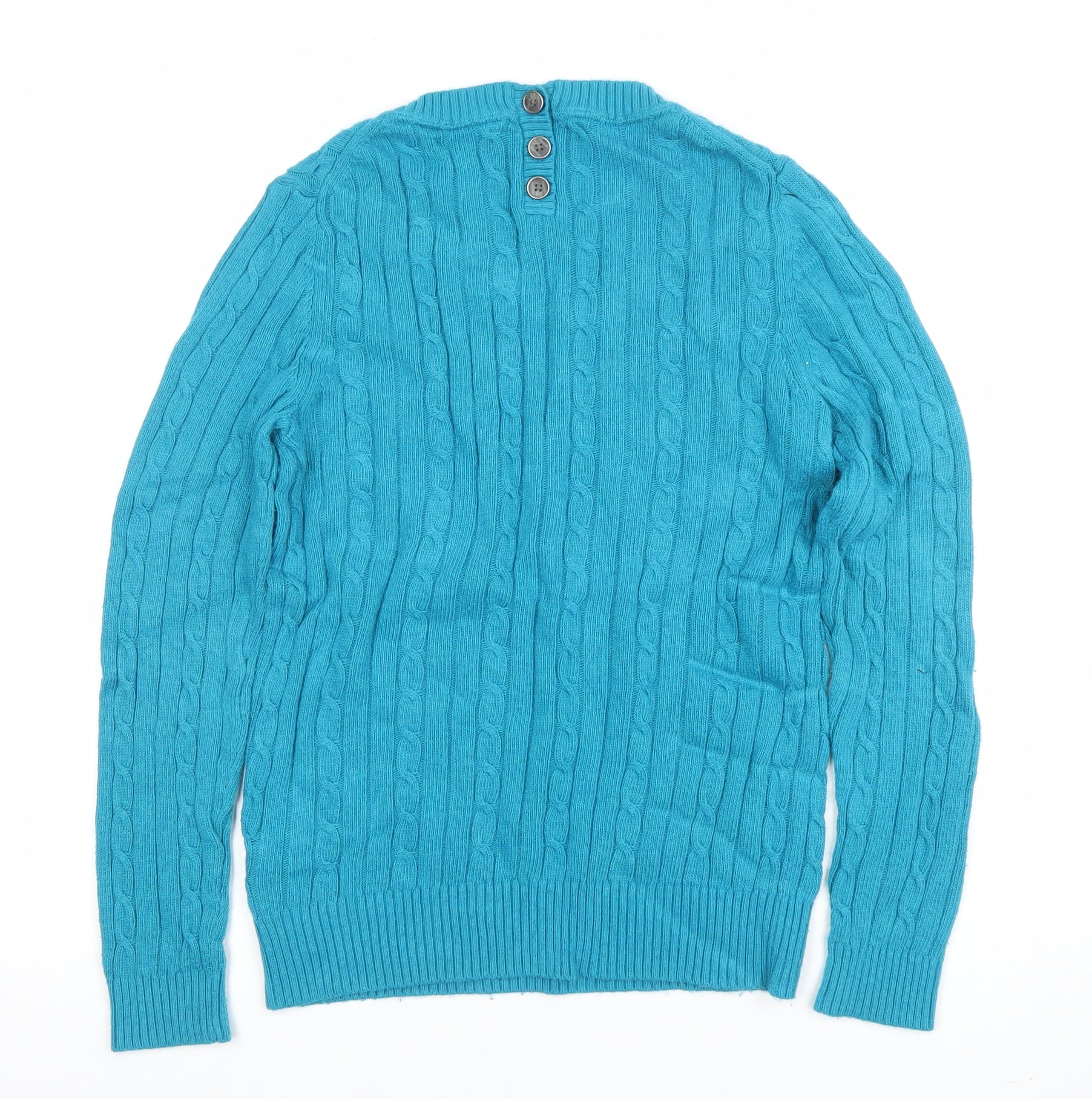 Tommy Hilfiger Women's Blue Cable-Knit Cotton Pullover Jumper Size L