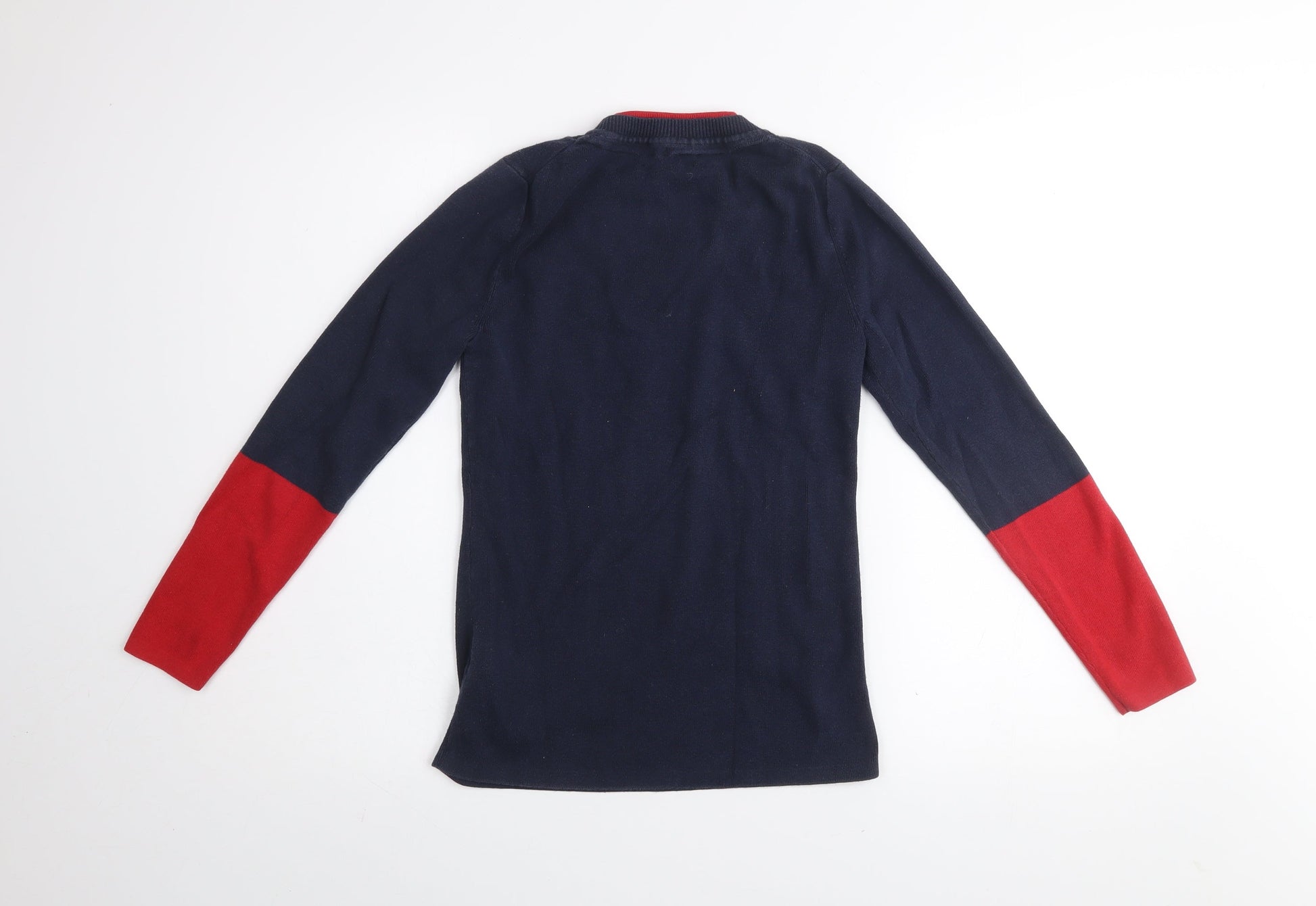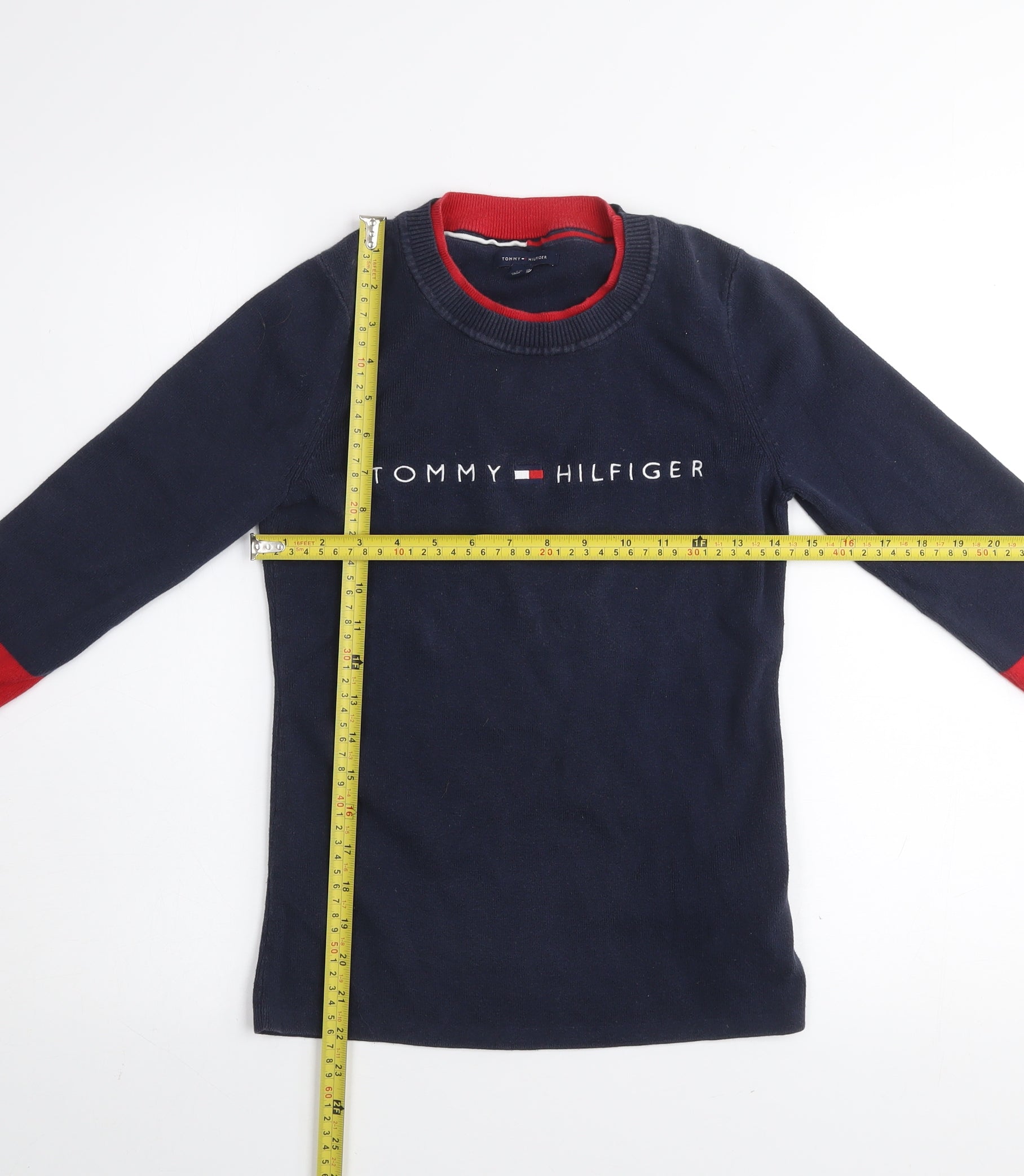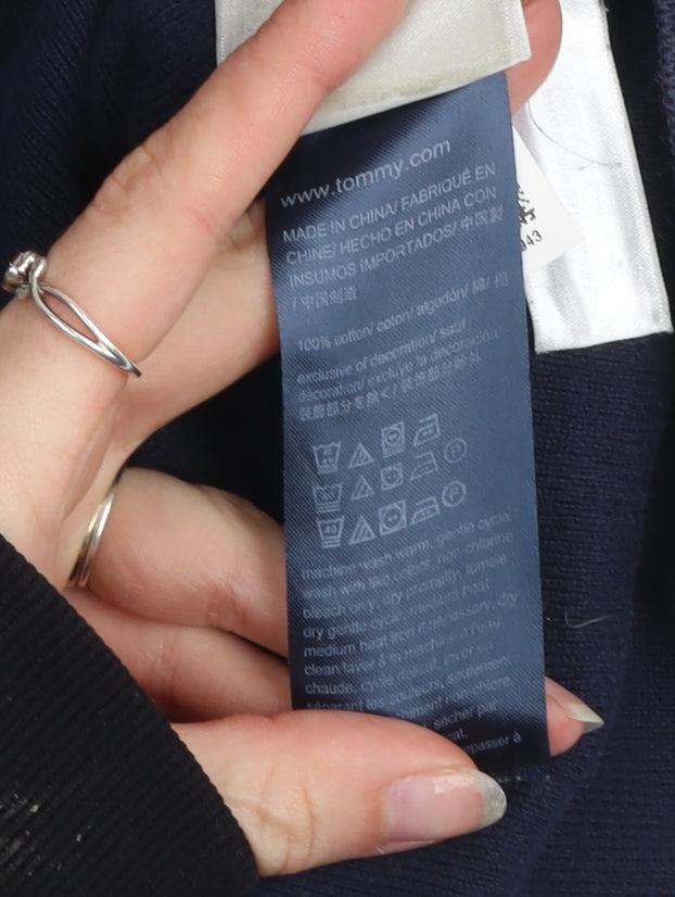 Tommy Hilfiger Womens Blue Red Crew Neck Cotton Jumper Size S