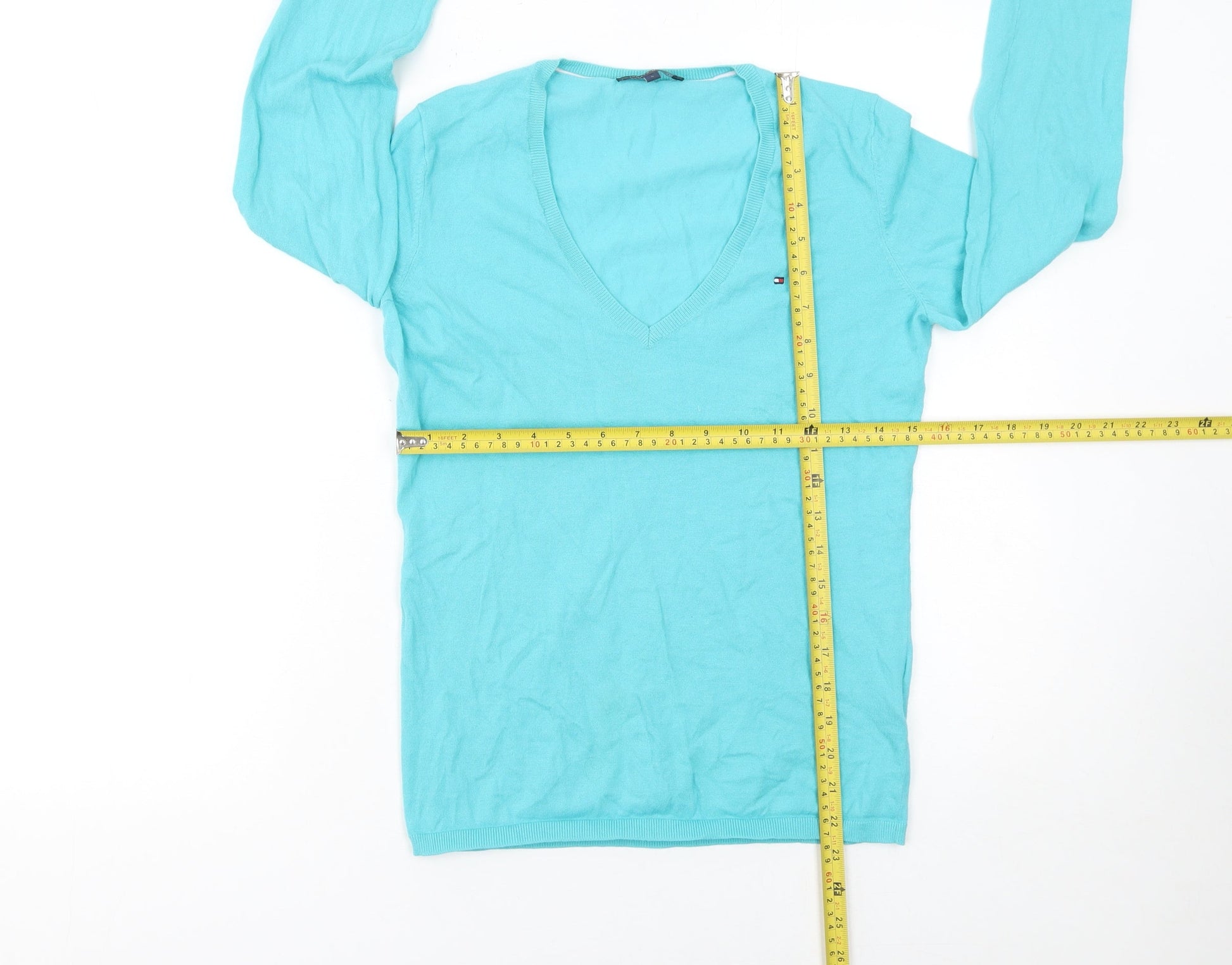 Tommy Hilfiger Women's Blue V-Neck Cotton Jumper Size S