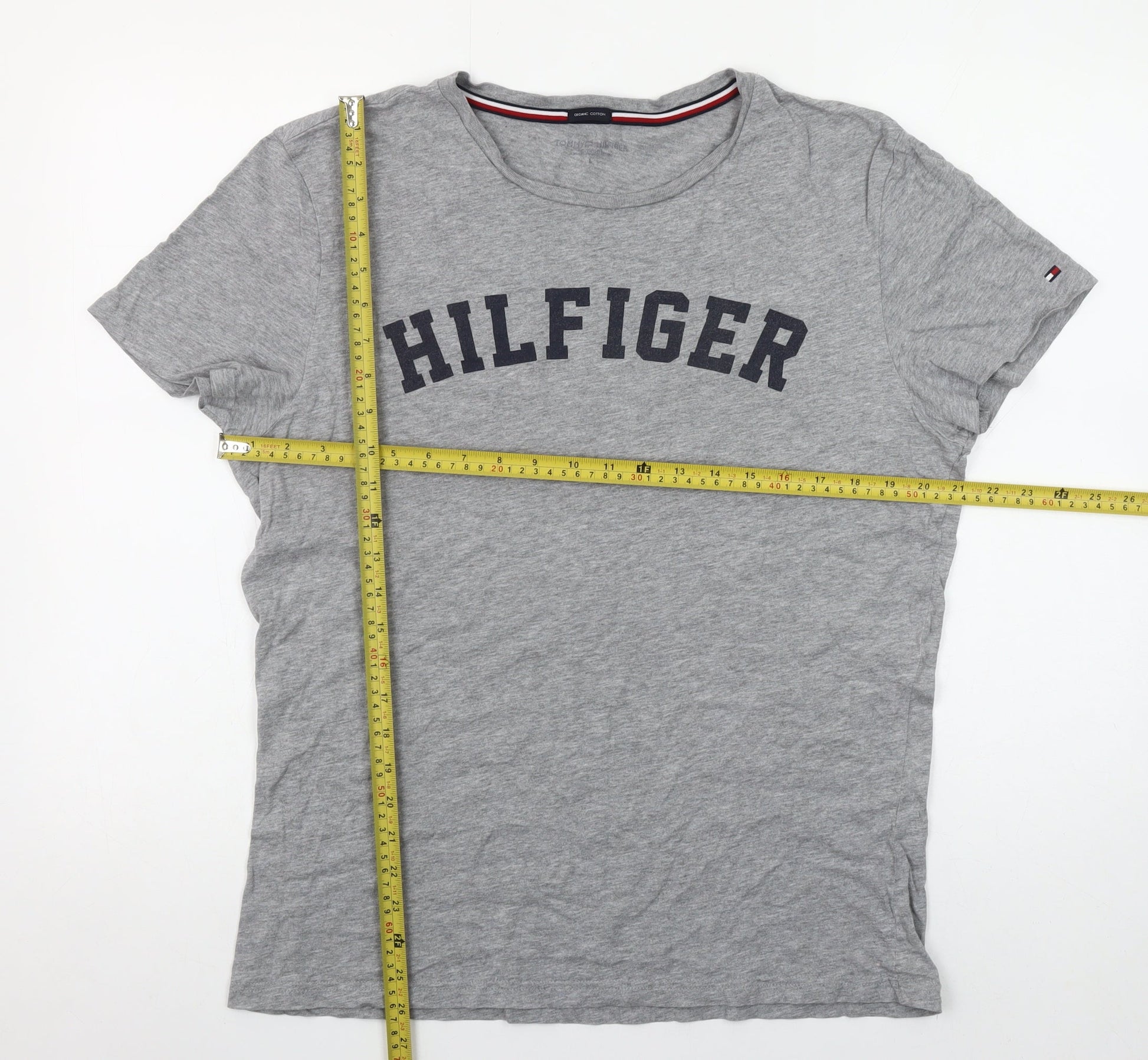 Tommy Hilfiger Womens Grey Cotton Logo T-Shirt Size L Casual