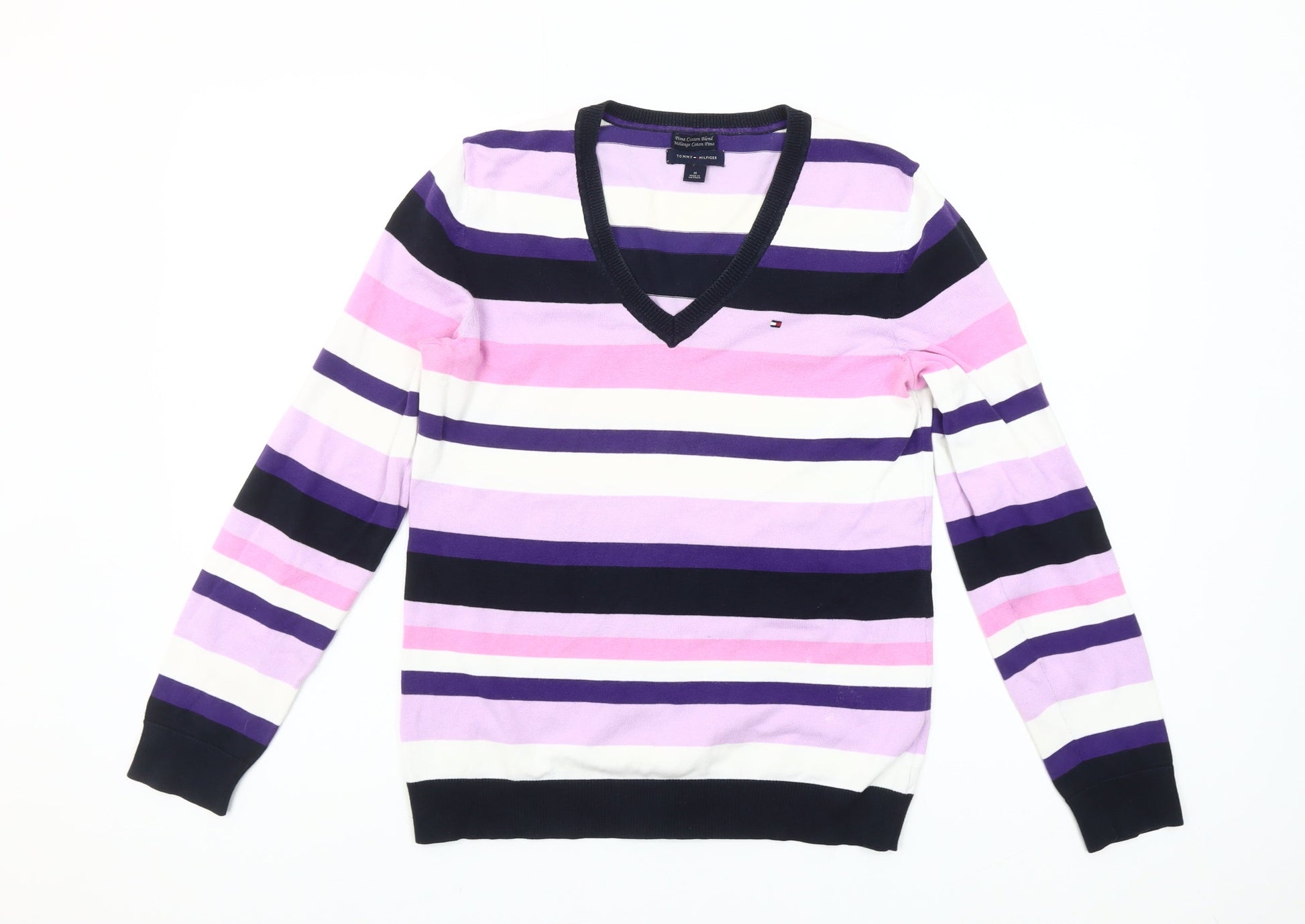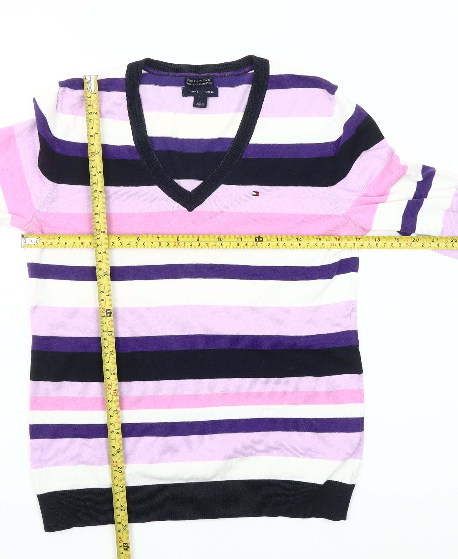 Tommy Hilfiger Womens Multicoloured V-Neck Cotton Blend Jumper Size M
