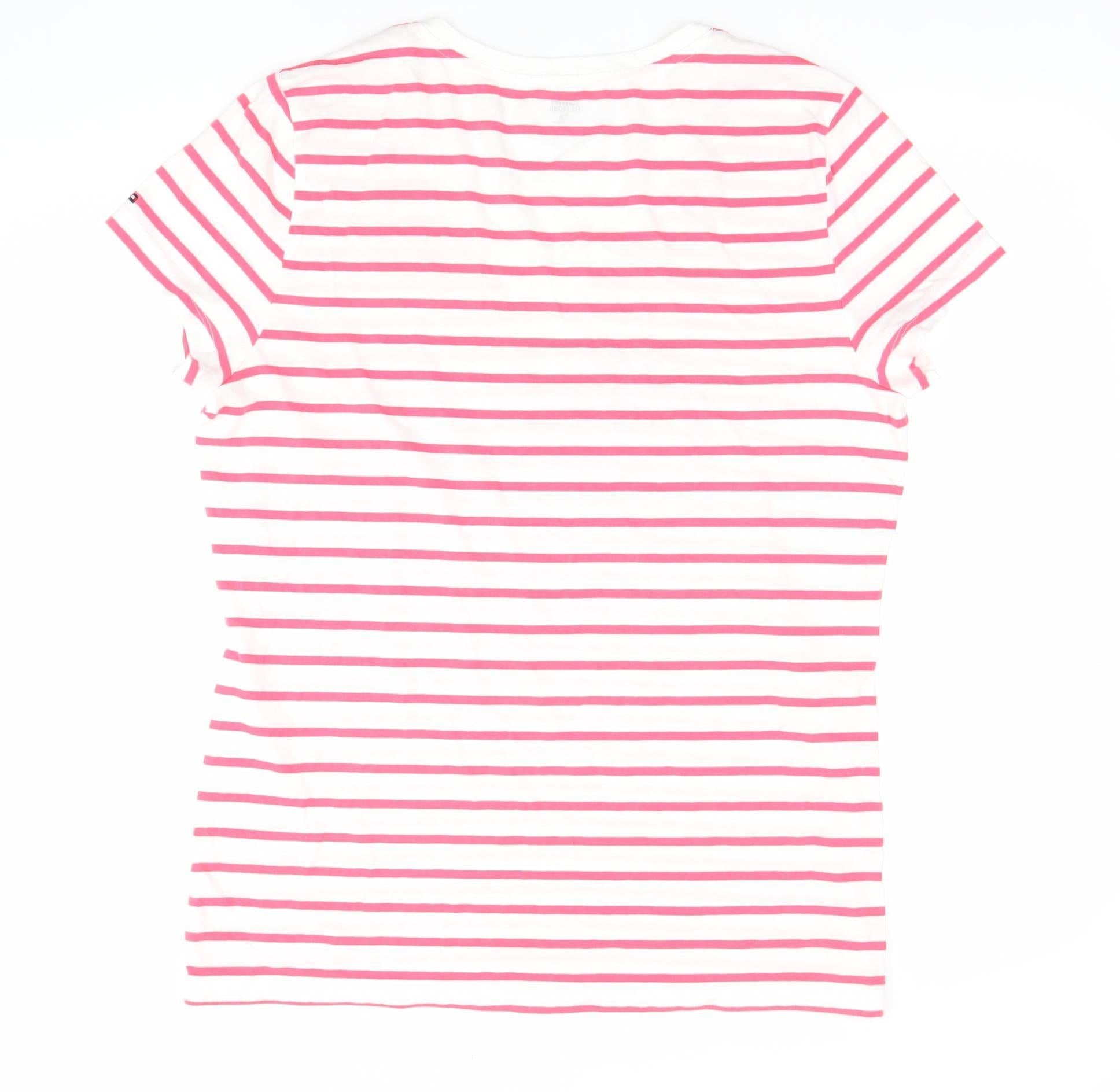 Tommy Hilfiger Womens Pink Striped V-Neck Cotton T-Shirt Size M