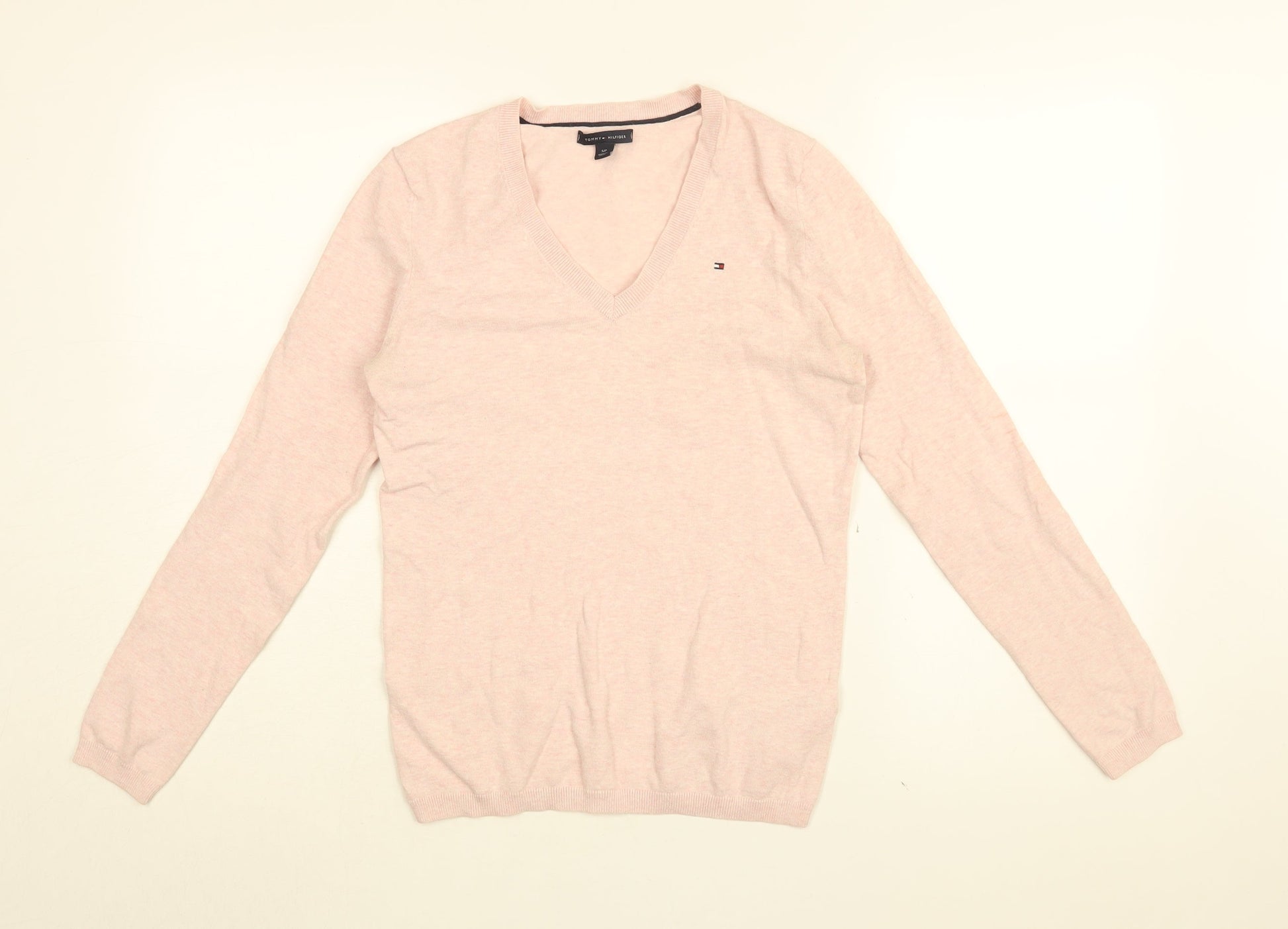 Tommy Hilfiger Womens Pink V-Neck Cotton Pullover Jumper Size S