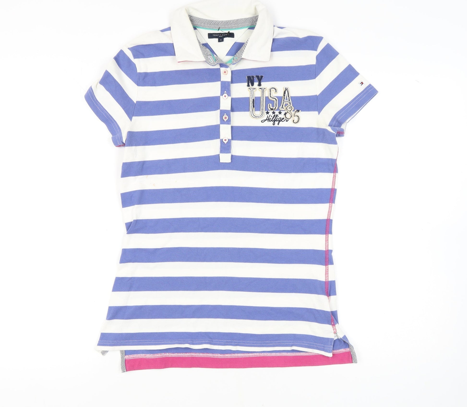 Tommy Hilfiger Women's Polo Shirt, Blue Stripe, M