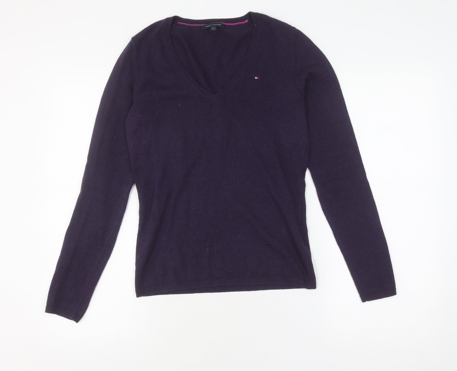 Tommy Hilfiger Women's Purple V-Neck Knit Jumper XS