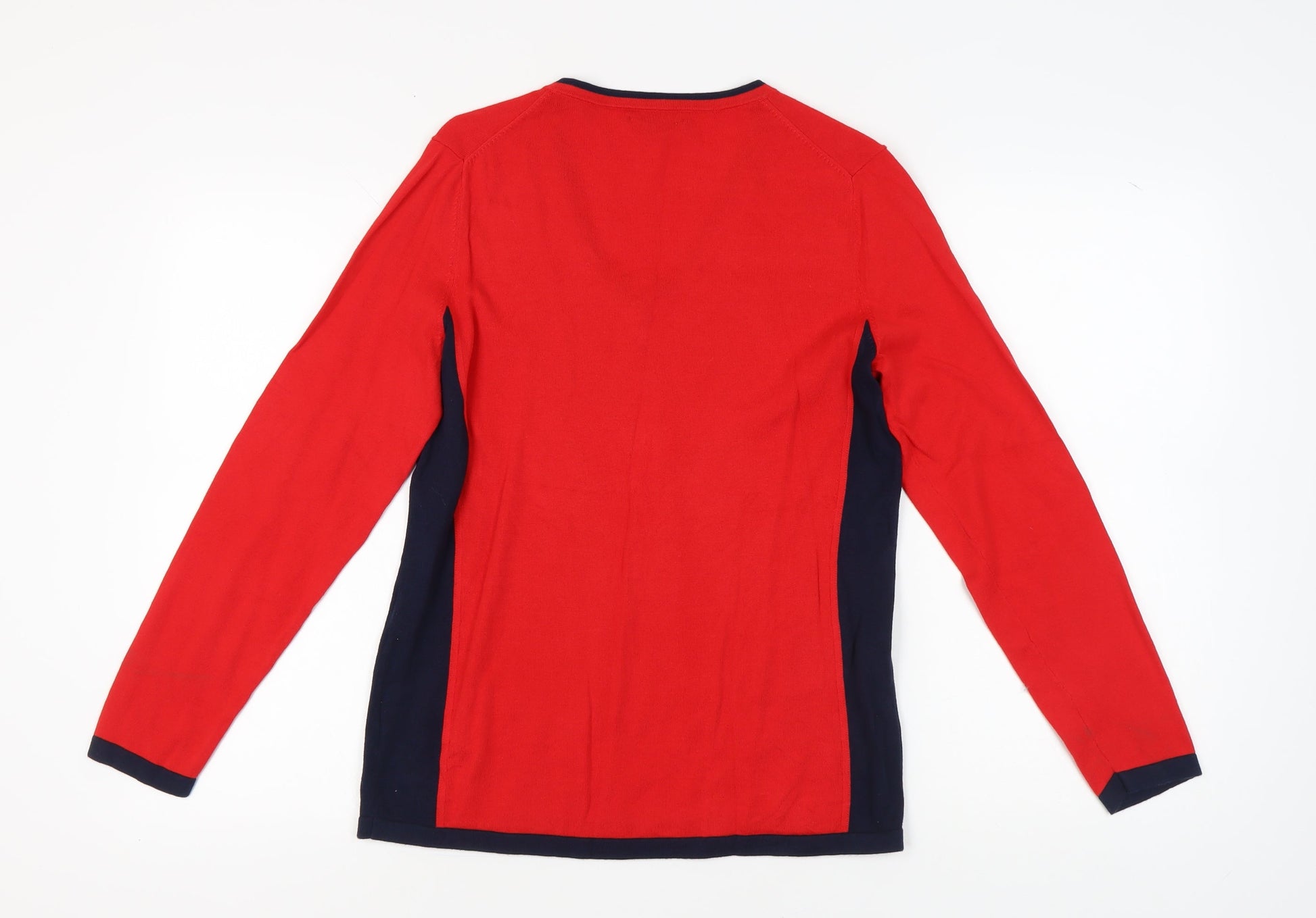 Tommy Hilfiger Women's Red V-Neck Pullover Jumper - L