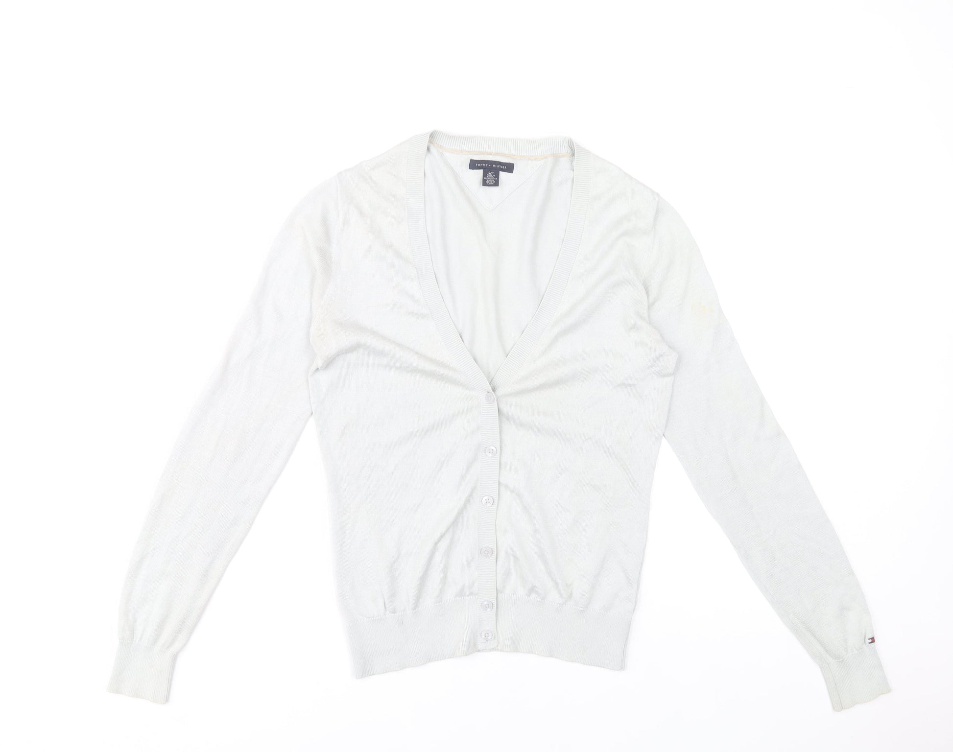 Tommy Hilfiger Womens White Cotton Knit V-Neck Cardigan Size S
