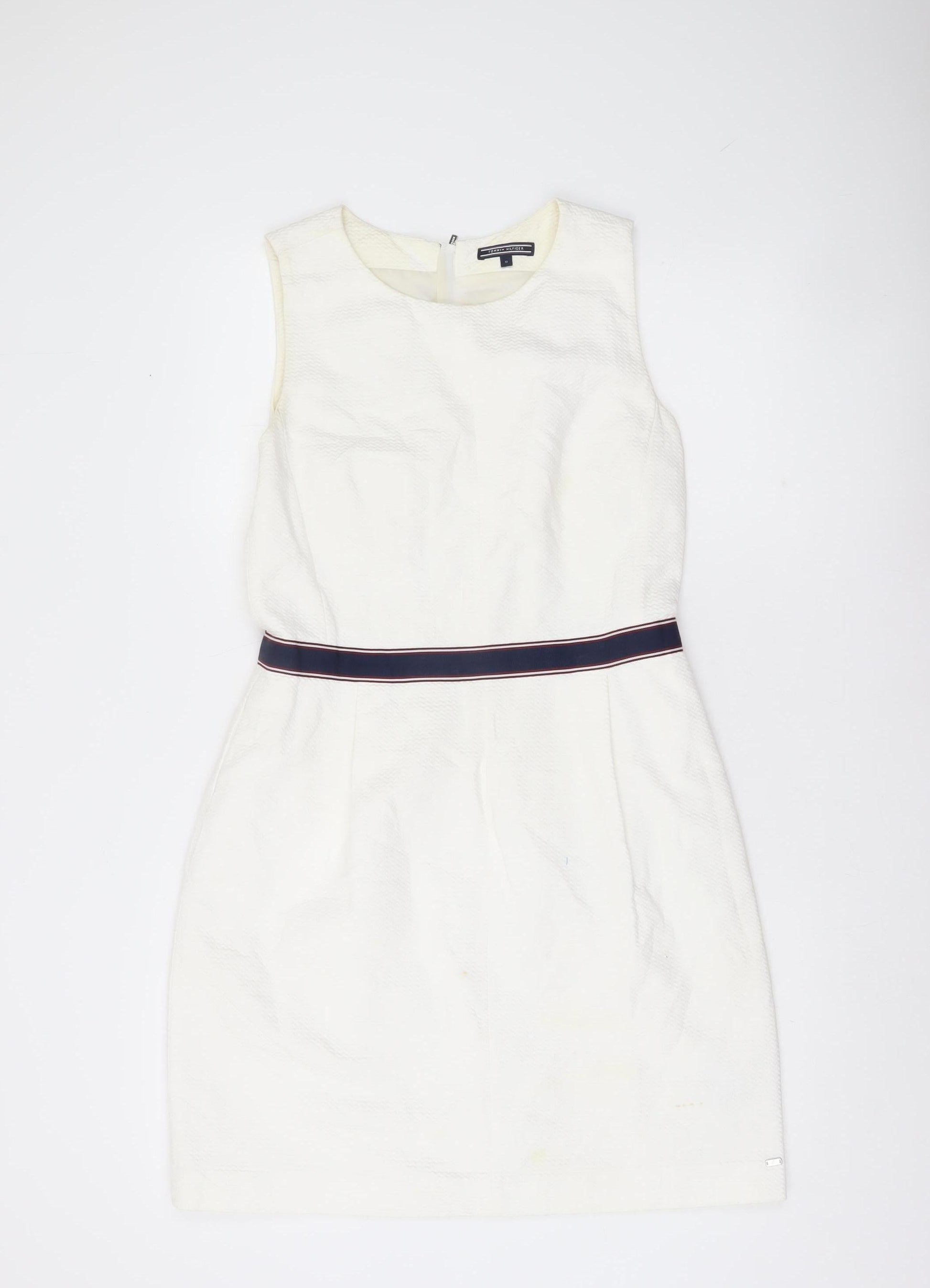 Tommy Hilfiger Womens White Size 10 Sheath Dress Sleeveless Cotton